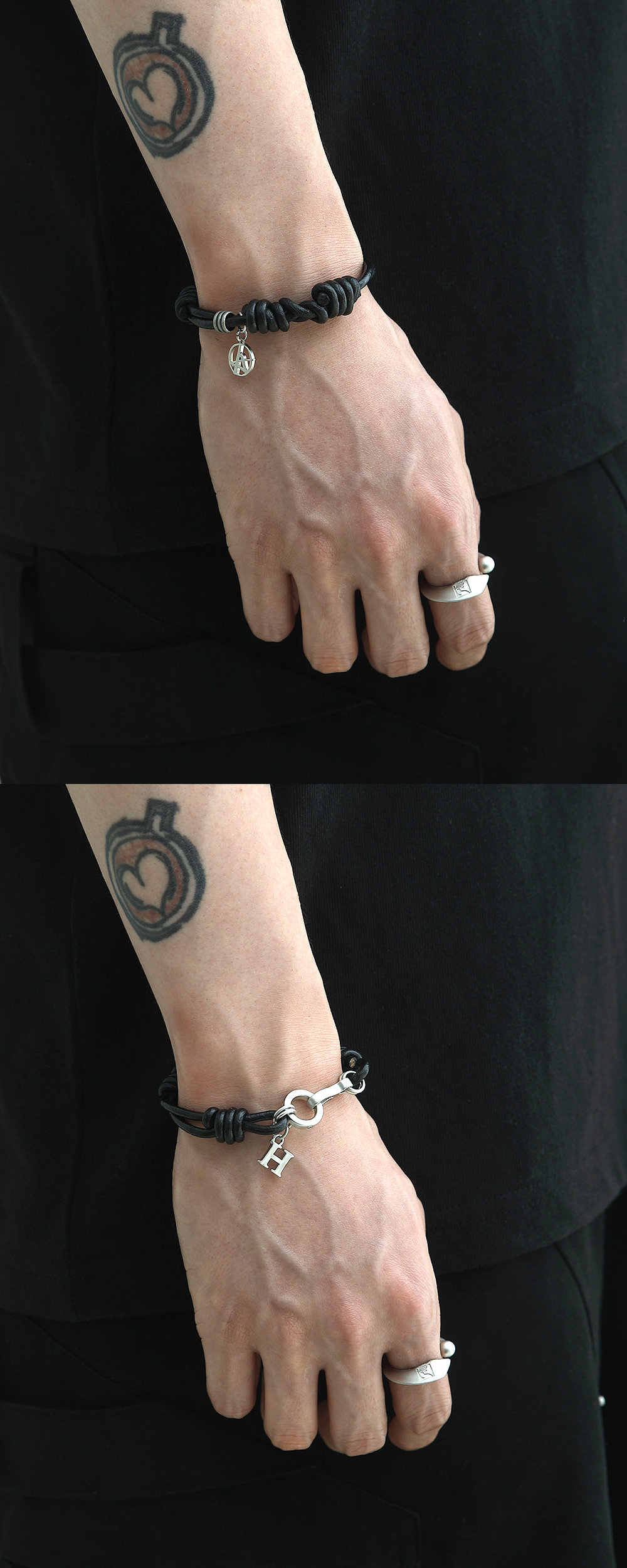 가죽 소재의 끈을 엮어 경쾌한 분위기를 연출한 팔찌입니다. 단품 및 레이어드 모두 활용도가 높은 제품입니다. 해당 디자인은 매듭의 두께가 있어 기존 팔찌보다 길이는 기나 내경은 동일합니다.