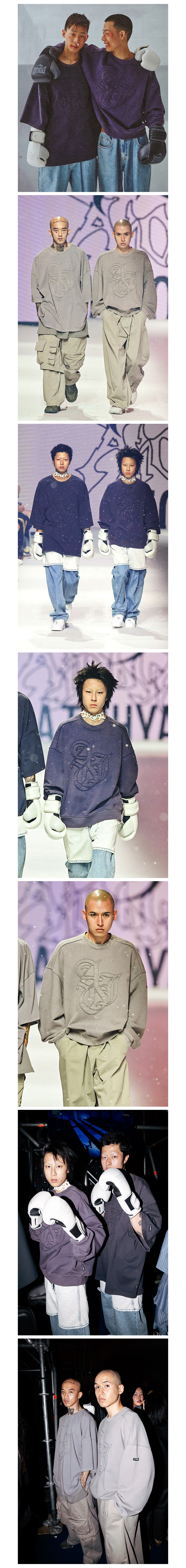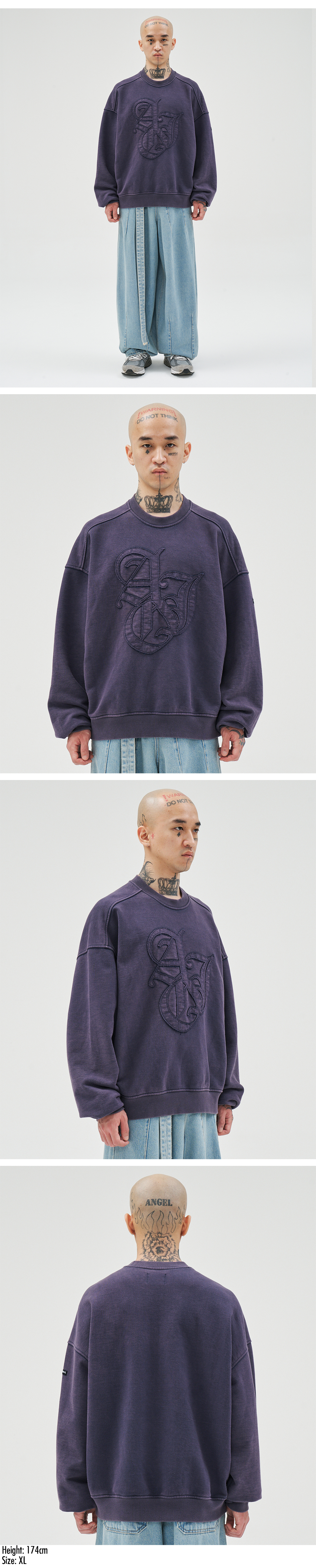 아조바이아조 스포티 로고 아플리케 워시드 스웻셔츠 네이비