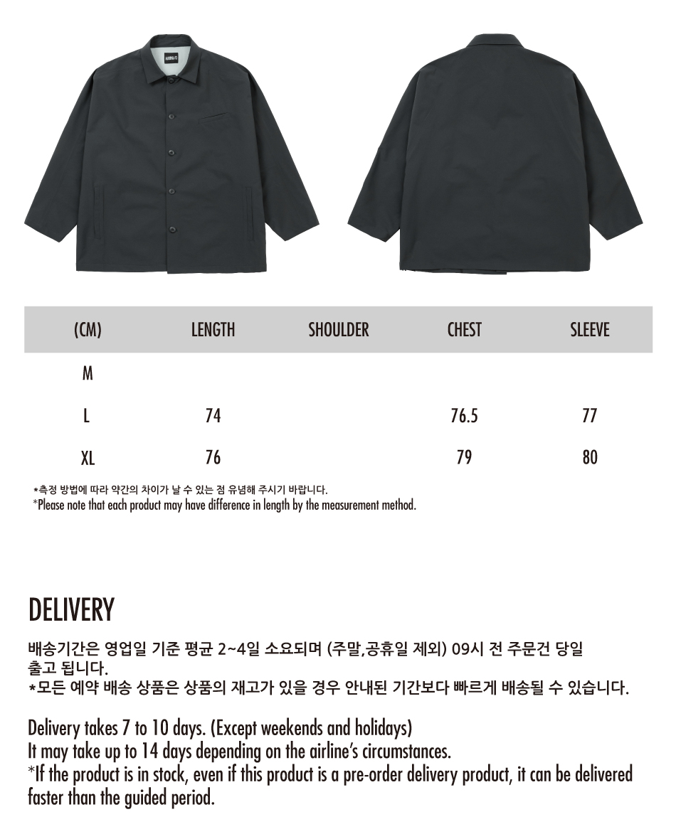| 총장 | 가슴단면 | 소매길이 |