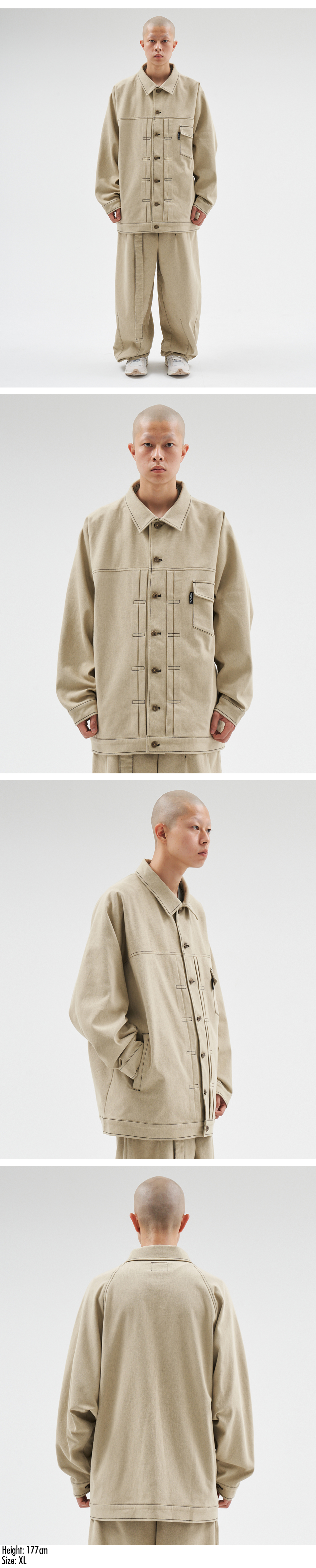 Ajobyajo Batwing Two-Tone Twill Jacket Beige