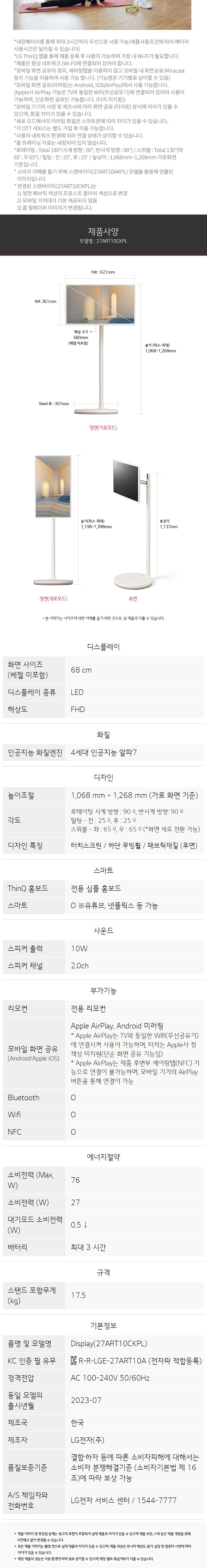 A/S 책임자 전화번호 : LG전자고객센터 / 1544-7777