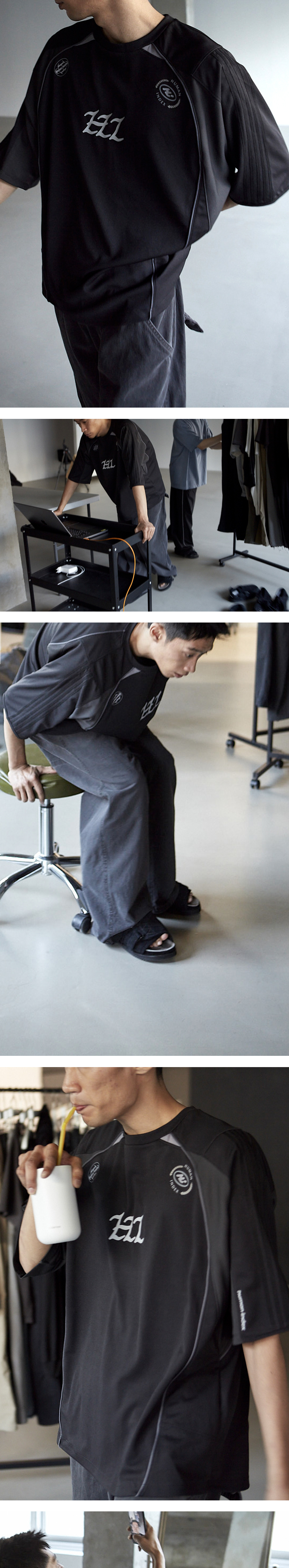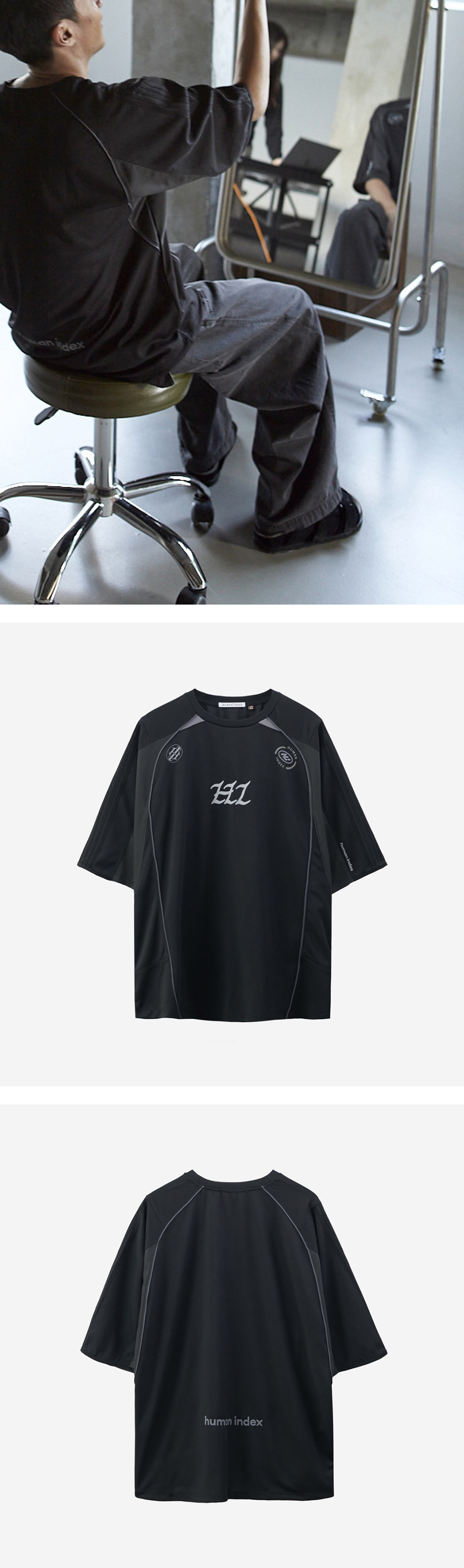 index 1/2 jersey tee * 가볍게 찰랑거리는 저지 티셔츠 * 자연스럽게 떨어지는루즈한 실루엣 * 쿨론 소재와 메시 소재 믹스하여 쾌적한 착용감 * 2 - 4 size