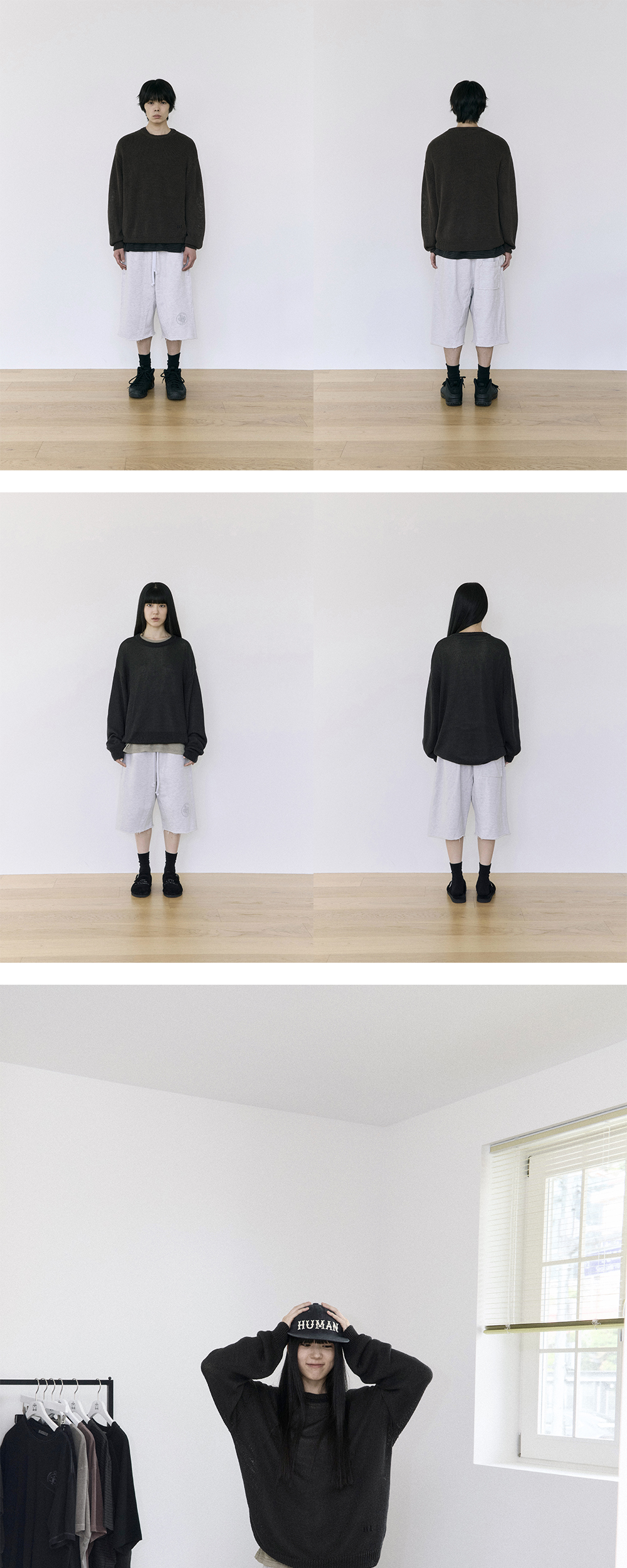 human 1/2 sweatpants *넉넉한 실루엣의 하프 스웻팬츠 *무릎을 가리는 길이감 *러프한 마감 *인심의 사선 배색 *밴딩 웨이스트 *남성모델: 180 초반 / 마른 체형, 3사이즈 착용 *여성모델: 170 초반 / 마른 체형, 3사이즈 착용 *가먼트 다잉 제품 특성상 생산 차수마다 색감이 조금씩 변경 될 수 있습니다. *다만 금번 차수 경우, 전 차수와의 색감차가 극히 미약해 별도 차이점은 코멘트 없이 발매 됩니다. 본 제품은 직전 차수와 유사한 실측 및 착용감으로 제작되었습니다. 기존 동일 제품을 착용해보신 고객의 경우, 동일 사이즈 선택 시 적합한 핏으로 착용이 가능합니다. 정확한 상세 사이즈의 경우, 실측표 확인 부탁드립니다.