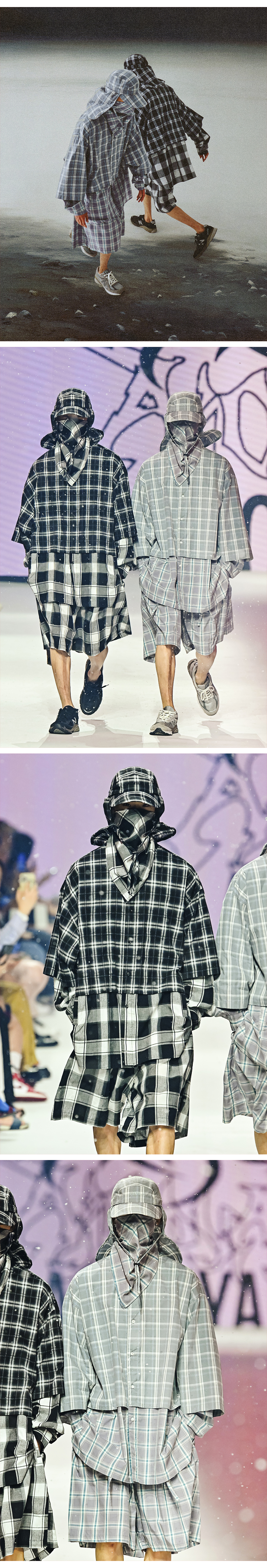 아조바이아조 체크 쇼츠 그레이