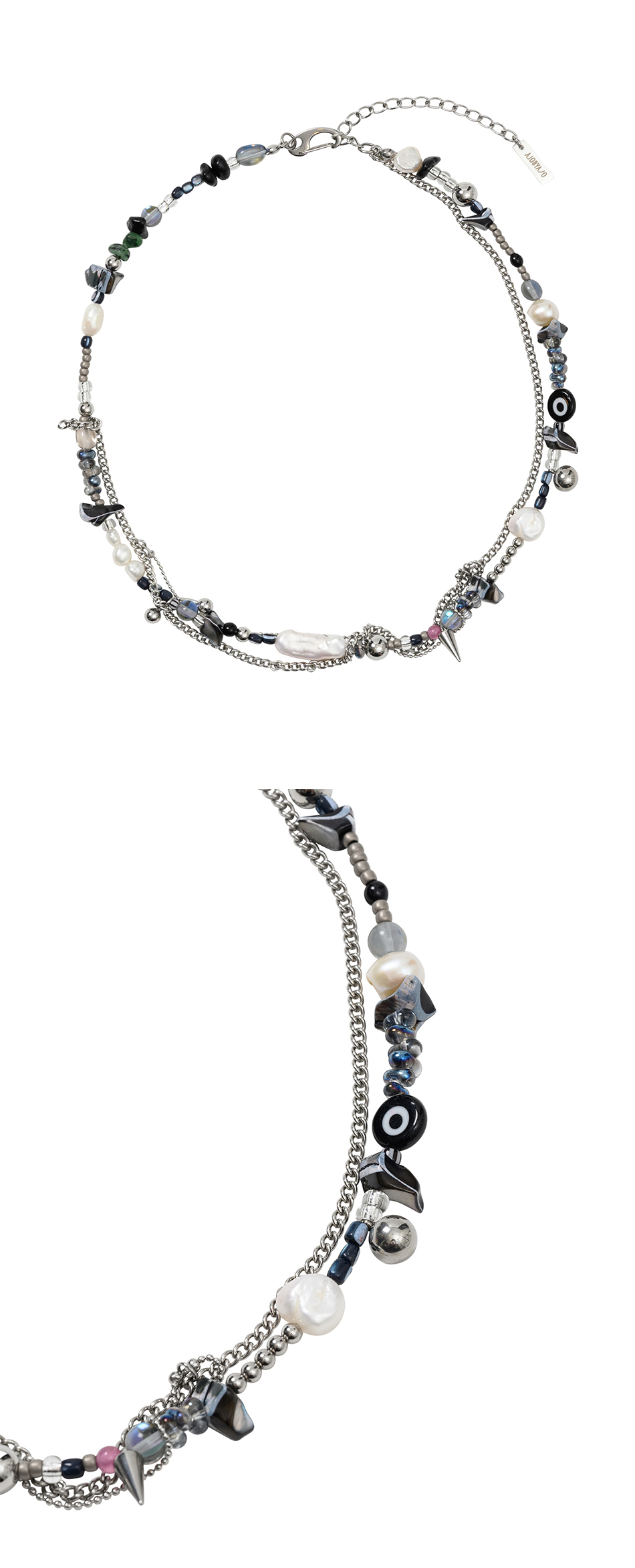 아조바이아조 프레쉬 워터 펄 레이어드 목걸이 실버