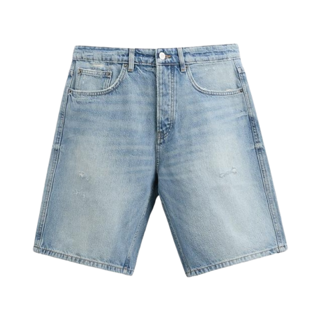 자라 스트레이트 핏 데님 버뮤다 팬츠 미디움 블루