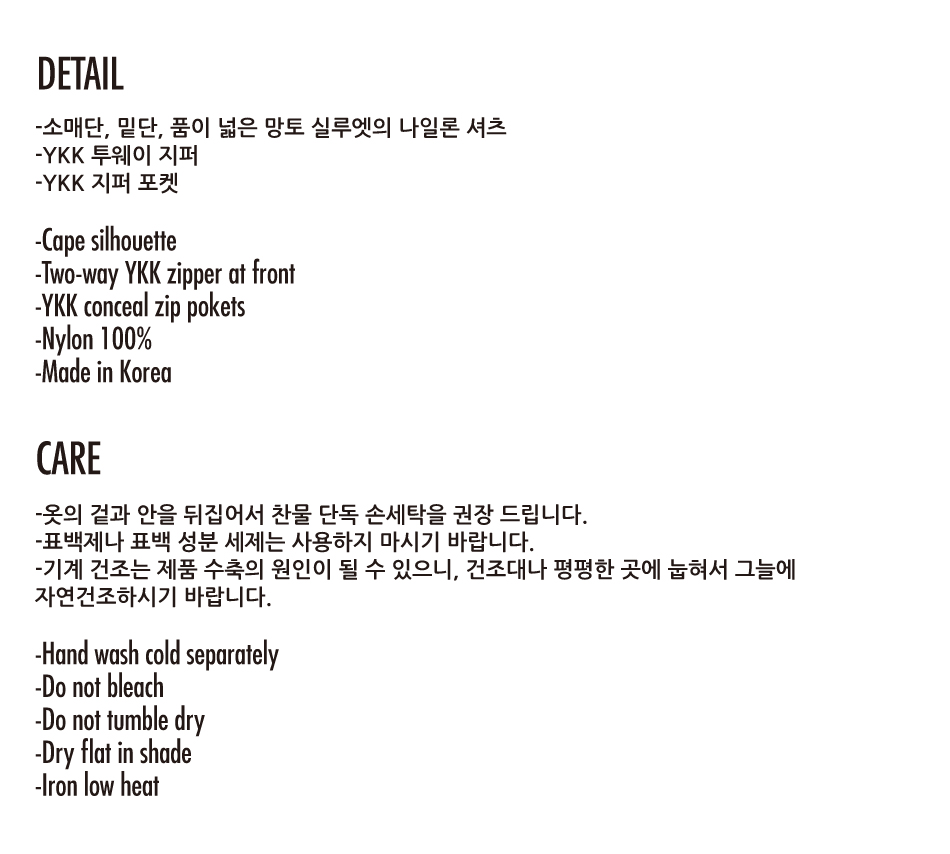 아조바이아조 나일론 케이프 셔츠 차콜