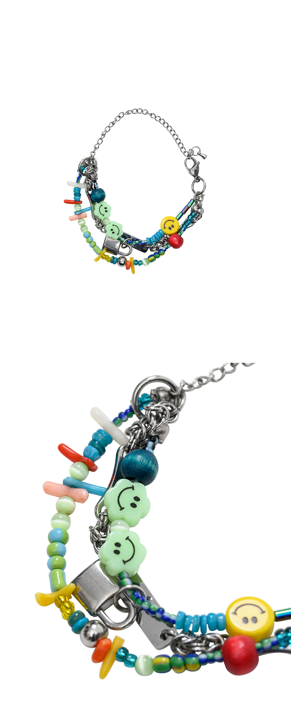 아조바이아조 PBA 스마일 코랄 비즈 팔찌 실버