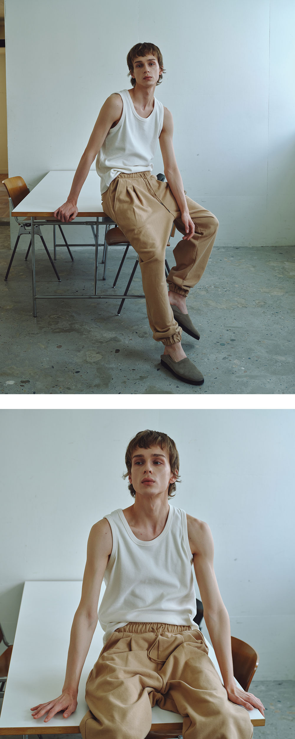 바이랑 코튼 로고 릴렉스드 팬츠 베이지