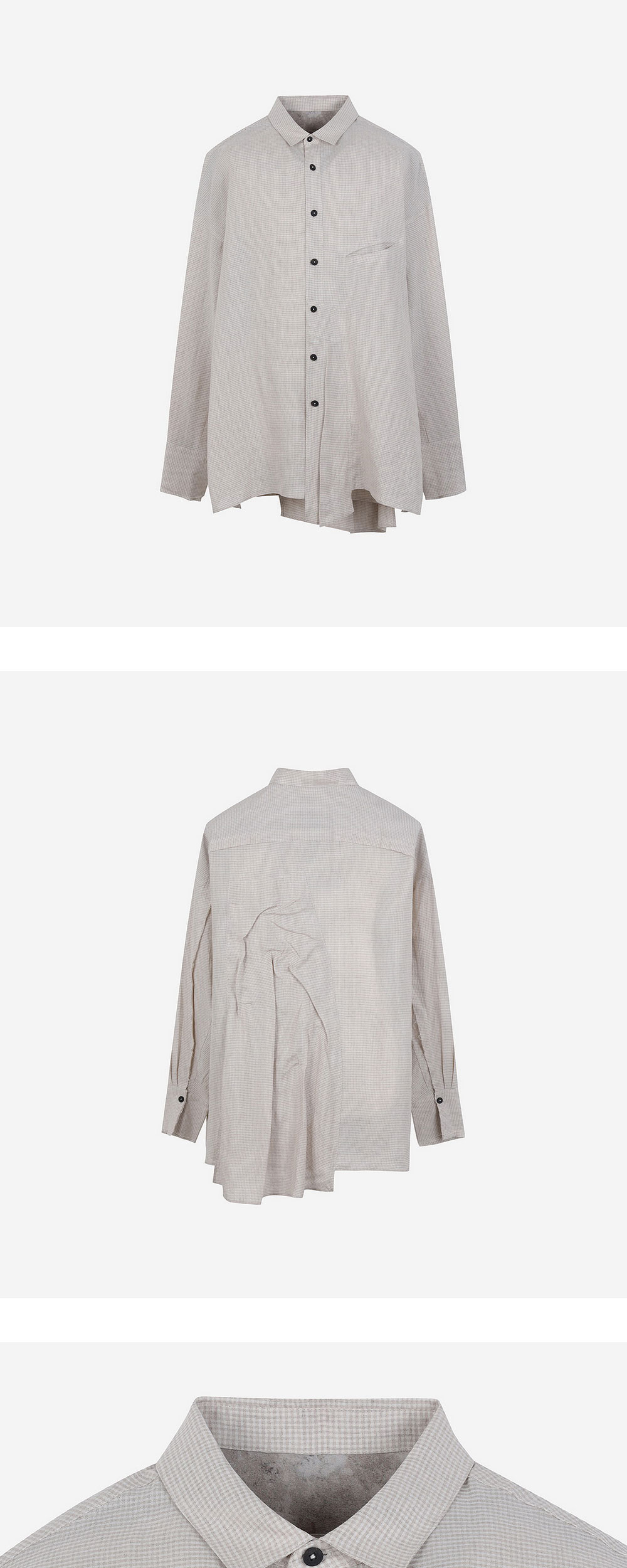 밑단의 비대칭 디테일과 주름잡힌 섬세한 원단이 특징인 어시메트릭 패치 워크 셔츠입니다. - 루즈핏 - 엉덩이 아래 길이 - 버튼 클로저 - 가슴 주머니 디테일 - 뒷면의 주름잡힌 효과 - 소매의 자연스러운 비대칭 플리츠 디테일