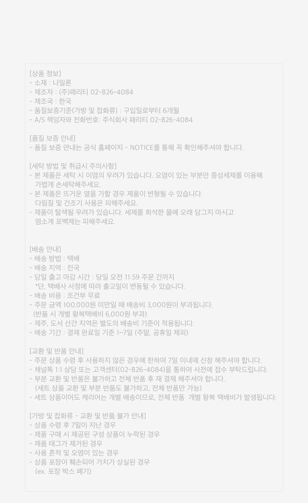 교환 및 반품 안내