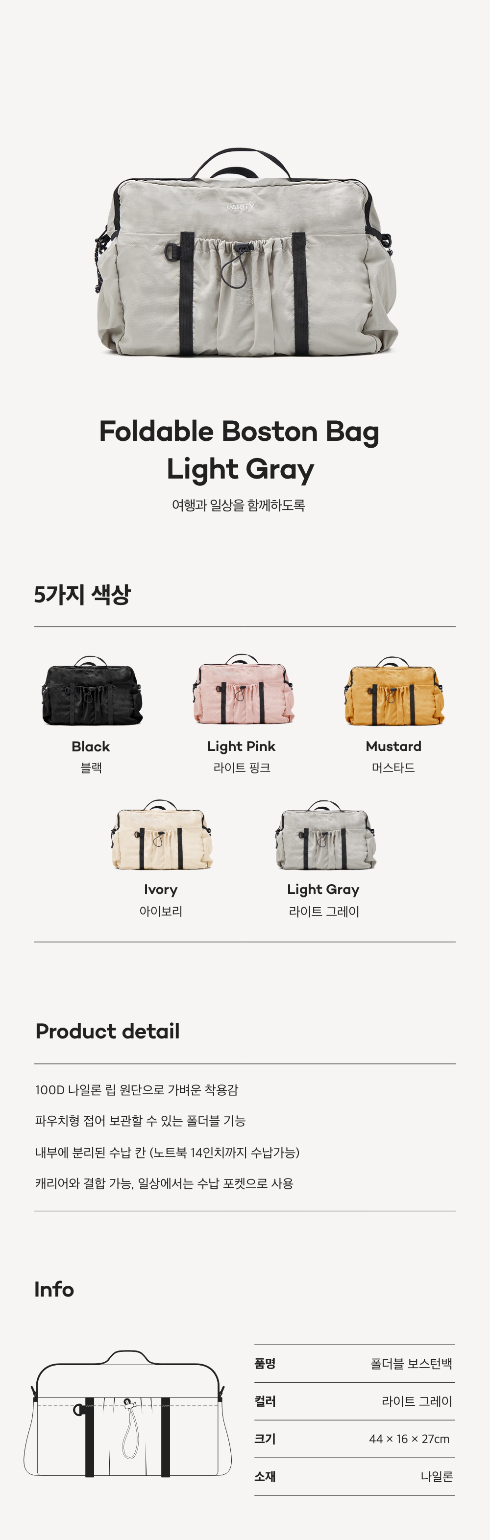 패리티 폴더블 보스턴백 라이트그레이