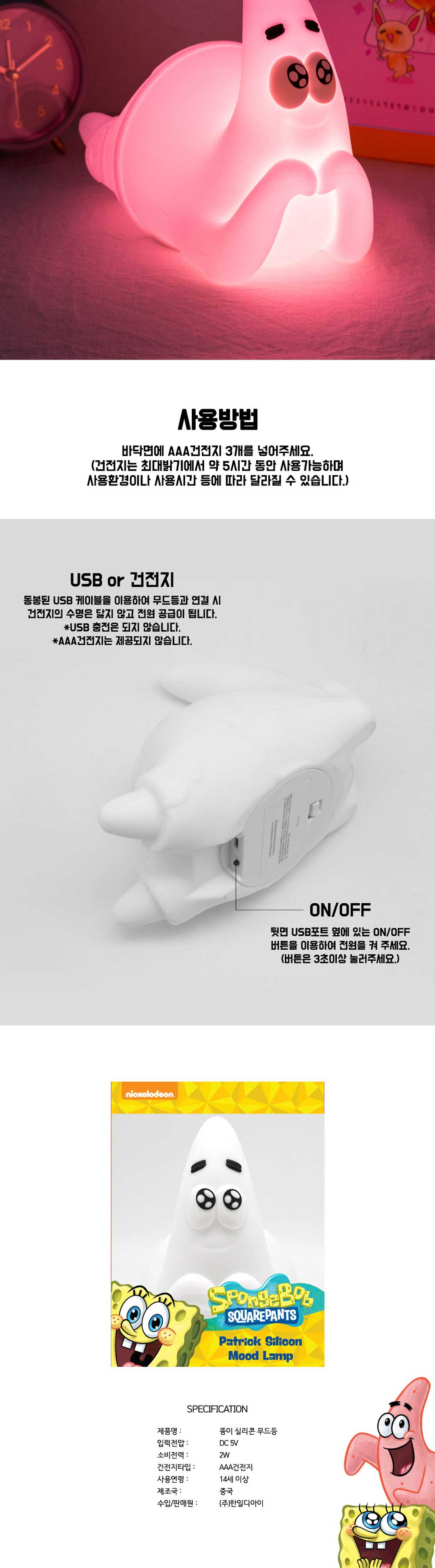 네모바지 스폰지밥 뚱이 실리콘 무드등