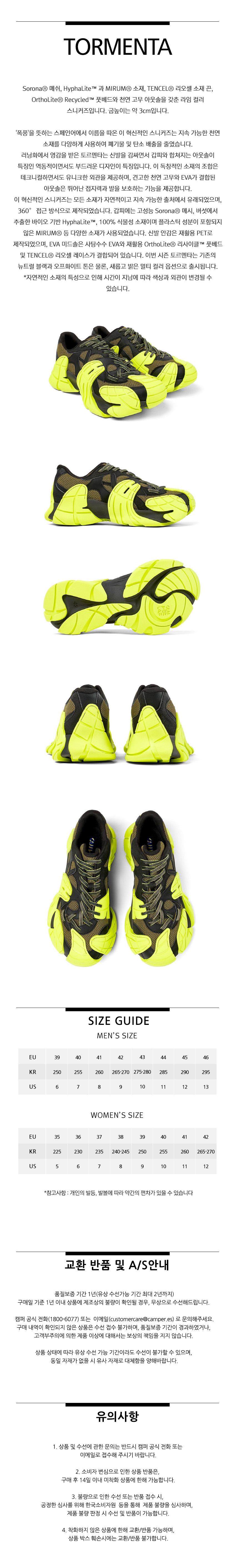 캠퍼랩 토르멘타 스니커즈 블랙 앤 라임