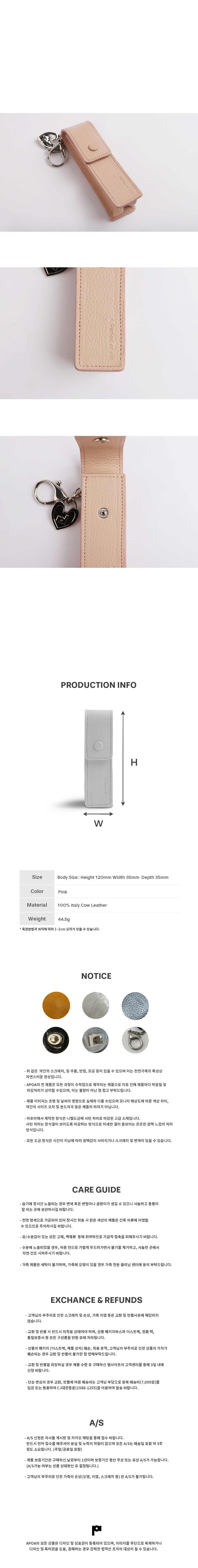 부드러운 터치감과 고급스러운 질감의 오플 가죽으로 제작한 립 케이스 키링 입니다. 이태리 카우 레더로 제작된 케이스로 길이감이 넉넉하게 제작되어 립스틱, 틴트 등의 수납이 용이합니다. 키링에 아포아 시그니처 로고 장식 디테일을 이용하여 러블리한 디테일을 더하였습니다.