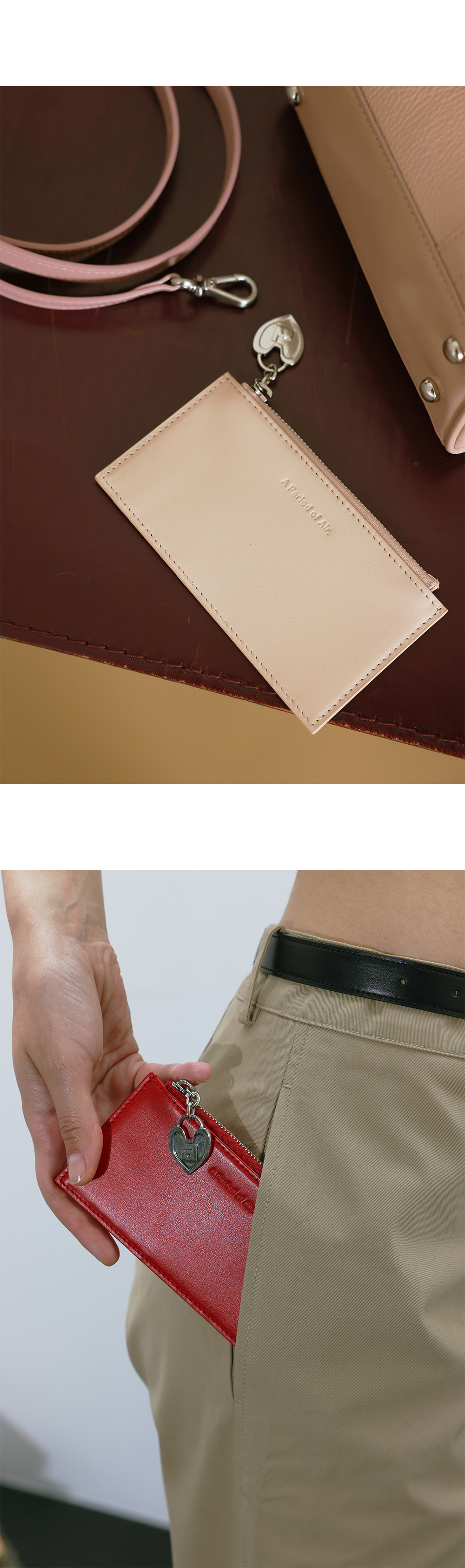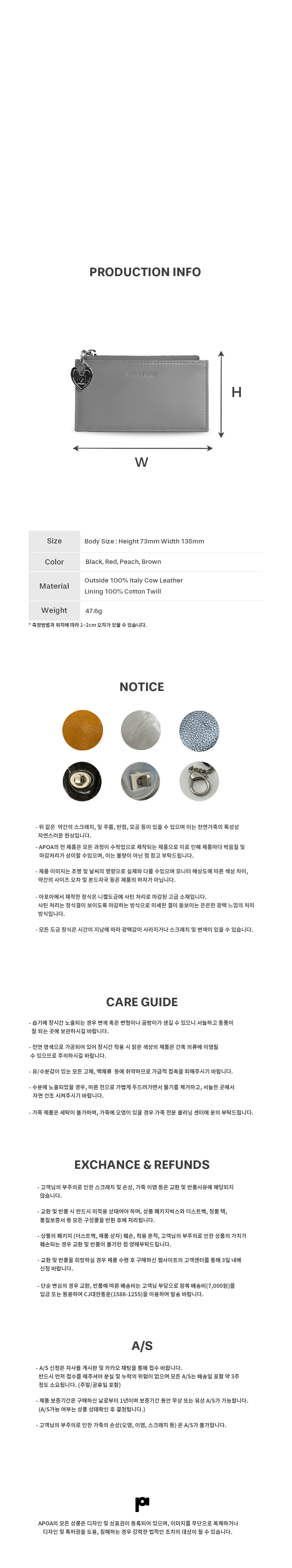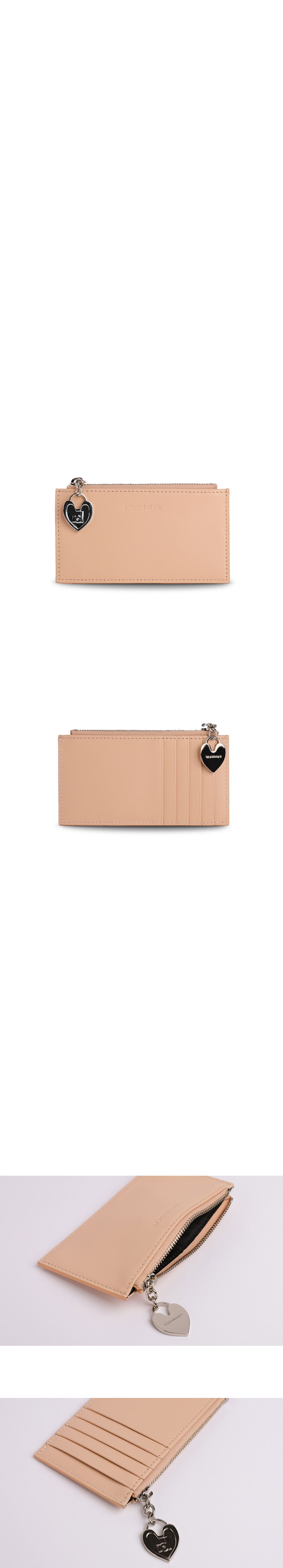 부드러운 터치감과 은은한 광택감이 특징인 이태리 카우 레더로 제작된 카드 월렛입니다. 5칸의 카드칸과 중앙 지퍼를 통해 수납의 용이성을 더하였습니다. 군더더기 없는 형태의 디자인으로 고급스러운 가죽이 돋보이는 제품입니다. 플러에 아포아 시그니처 로고 장식을 이용하여 러블리한 디테일을 더하였습니다.