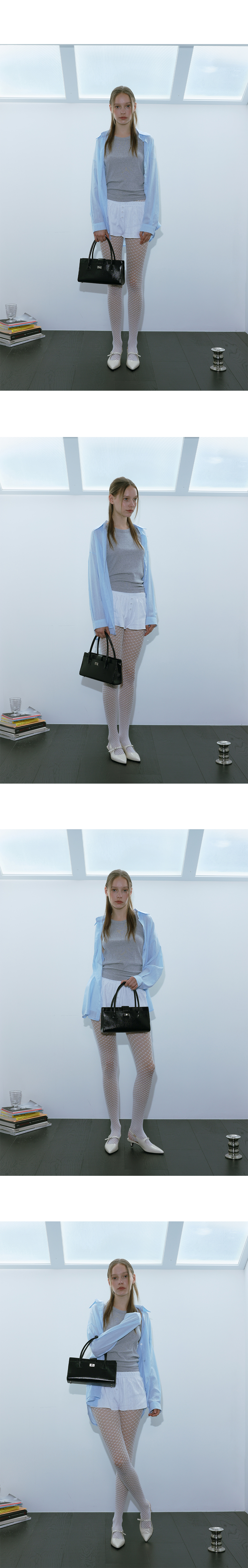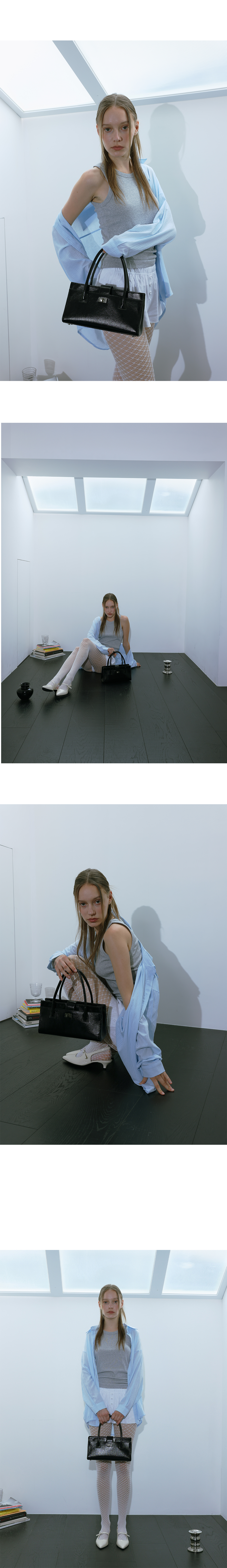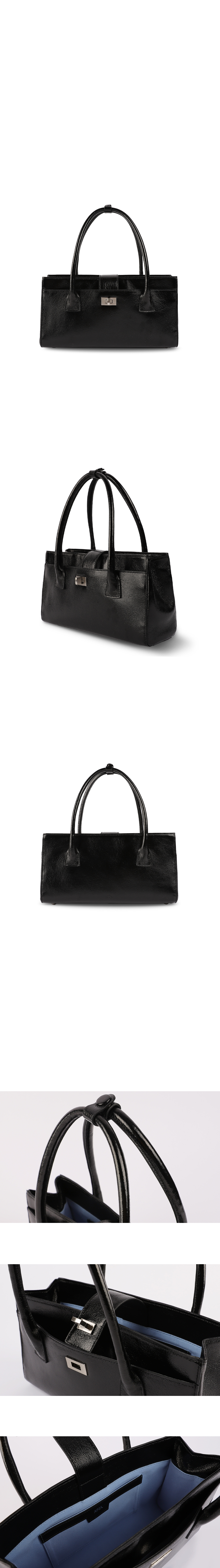 글로시한 소재의 천연 소가죽으로 제작되었으며 독특한 클로징 방식의 쇼퍼백입니다. 전면 포켓을 이용해 수납의 용이성을 더하였습니다. 토트 형식의 백으로 가벼운 일상에서 데일리하게 착용하실 수 있으며 미니멀하면서도 유니크한 디자인의 백입니다.