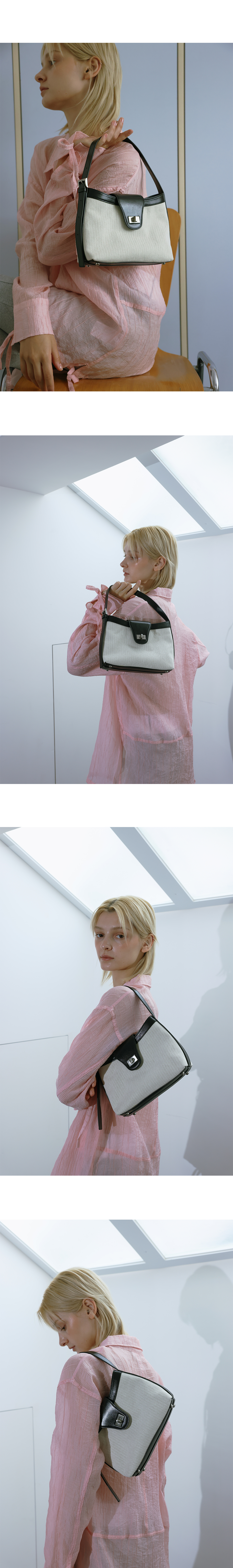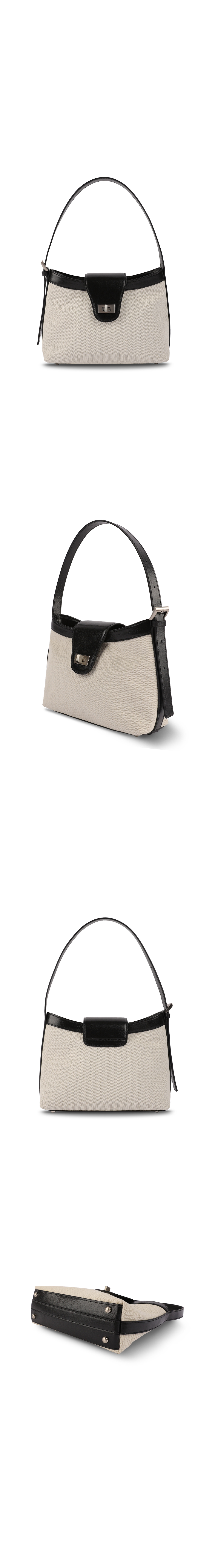 Pao hobo mini bag canvas는 파오 호보백의 축소형 디자인으로 소프트한 이태리 카우 레더와 고급스러운 헤링본 무늬의 캔버스 소재 콤비로 제작되어 자연스러운 쉐입과 Pao line의 유려한 곡선을 활용하여 제작된 백입니다. 길이 조정이 가능한 고정형 스트랩으로 구성되어 크로스, 숄더 등 다양한 연출이 가능합니다.