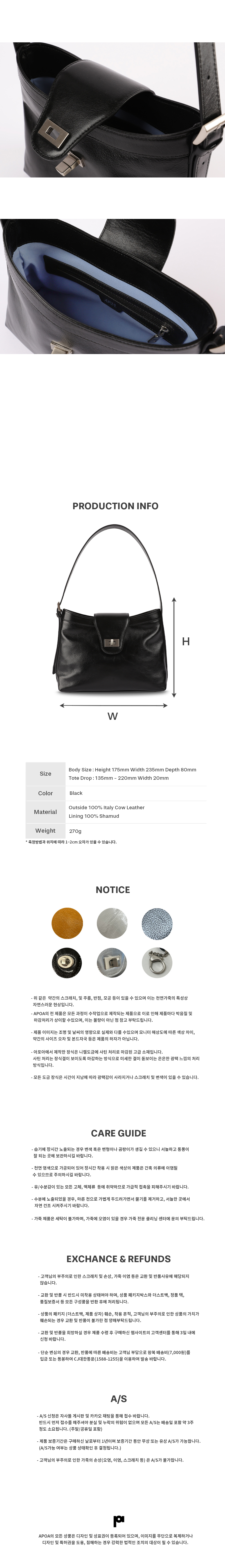 Pao hobo bag mini는 파오 호보백의 축소형 디자인으로 소프트한 이태리 카우 레더로 제작되어 자연스러운 쉐입과 Pao line의 유려한 곡선을 활용하여 제작된 백입니다. 길이 조정이 가능한 고정형 스트랩으로 구성되어 크로스, 숄더 등 다양한 연출이 가능합니다. 내부에 샤무드 안감을 사용하여 고급스러운 무드를 연출하였으며 내부 창틀 포켓으로 수납의 분리가 용이합니다.
