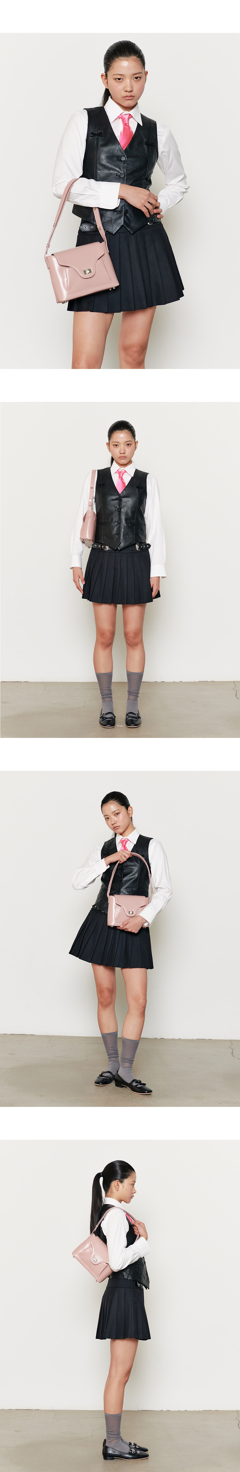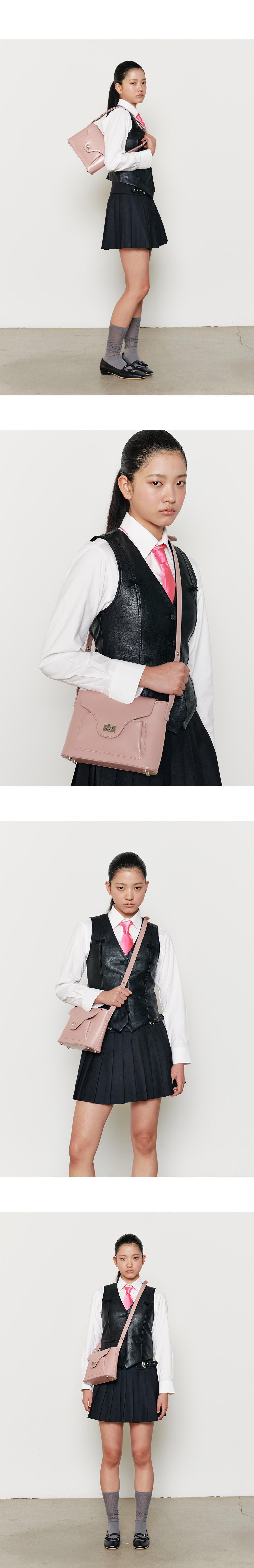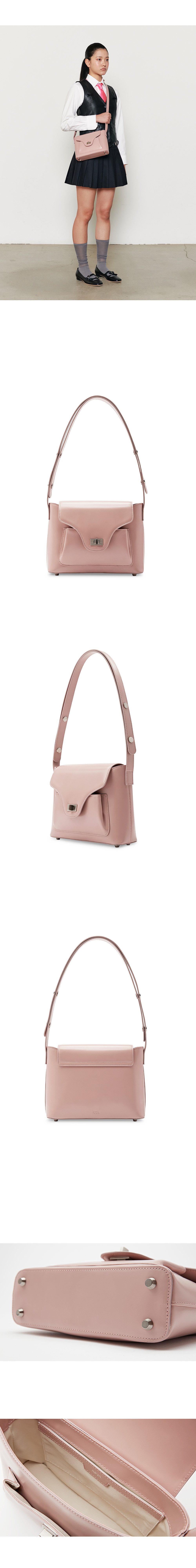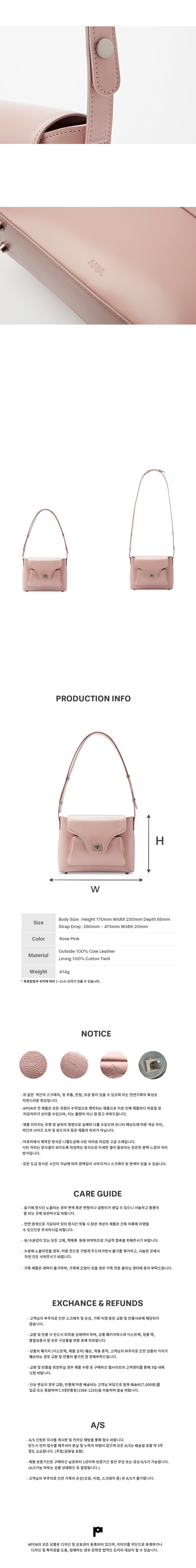 아포아 시그니처 디자인 PAO line 백으로 포멀하면서도 클래식한 라인의 백입니다. 빈티지한 무드의 바디 디자인과 Pao 라인만의 중앙 디테일이 더해진 백으로 구조적인 형태로 제작되었습니다. 스트랩은 클래식한 무드의 스냅을 사용하여 2단계 길이 조정이 가능하며, 숄더 혹은 크로스백으로 다양한 무드를 연출하실 수 있습니다. 이태리 수입 가죽을 사용하여 부드러운 터치감과 은은한 광택이 매력적인 백으로 사틴 도금 장식을 활용하여 빈티지한 무드를 연출하였습니다. 중앙 수납과 앞 포켓의 수납이 가능하여 수납의 용이성을 더하였습니다.
