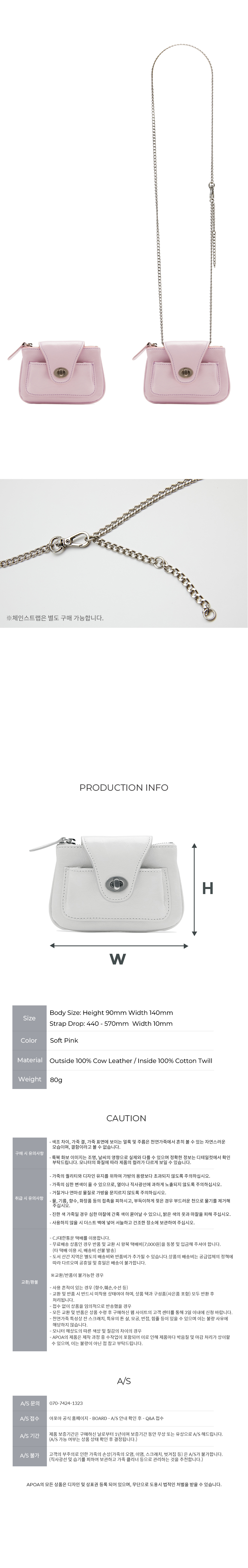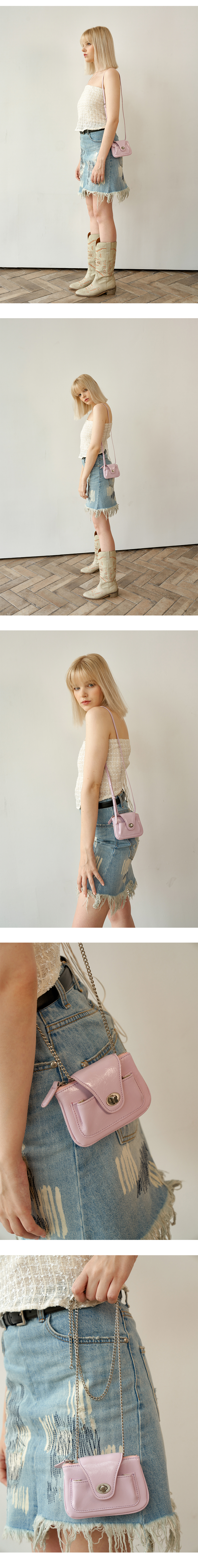 기존의 Pao bag 축소판 디자인으로 구조적인 디테일을 변경한 micro bag입니다. 구성되어 있는 스트랩을 활용하여 코디에 활용하실 수 있으며 스트랩을 탈착하여 지갑의 형태로도 사용 가능합니다.
