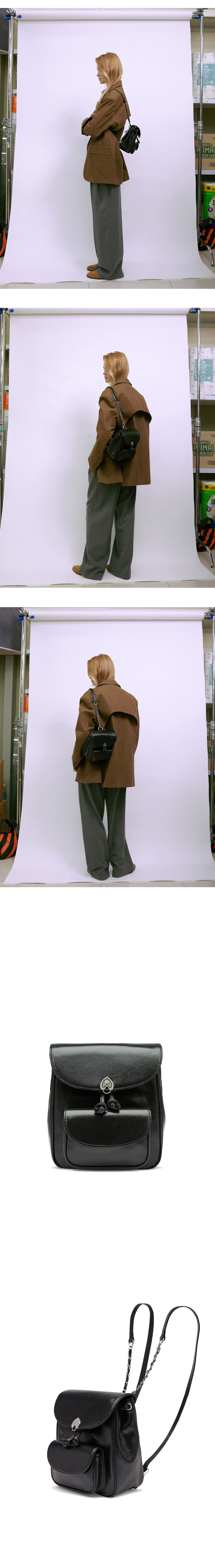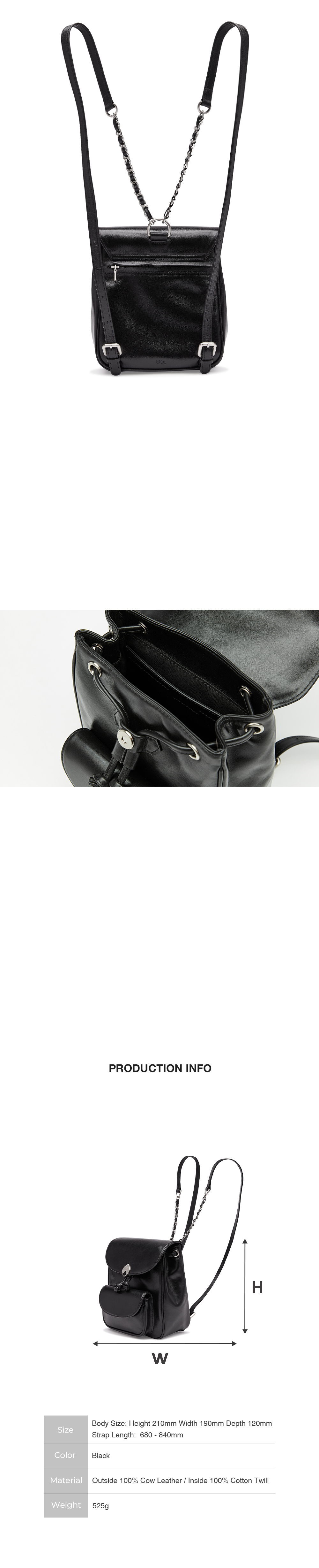 아포아 뉴 심볼 로고 라인 Lindo Backpack입니다. 이태리 글로시 소가죽으로 자연스러운 광택감과 표면의 크랙이 매력적인 소재로 제작된 bag입니다. 스퀘어 형태의 백팩에 외부에는 작은 소지품이 수납 가능한 아웃포켓이 있으며 뒷면에는 지퍼를 이용한 내부 수납공간으로 수납의 용이성을 주었습니다. 컴팩트한 사이즈감으로 후면 스트랩은 체인과 어깨 부분 레더 스트랩을 연결하여 편안한 사용감으로 제작되었습니다.