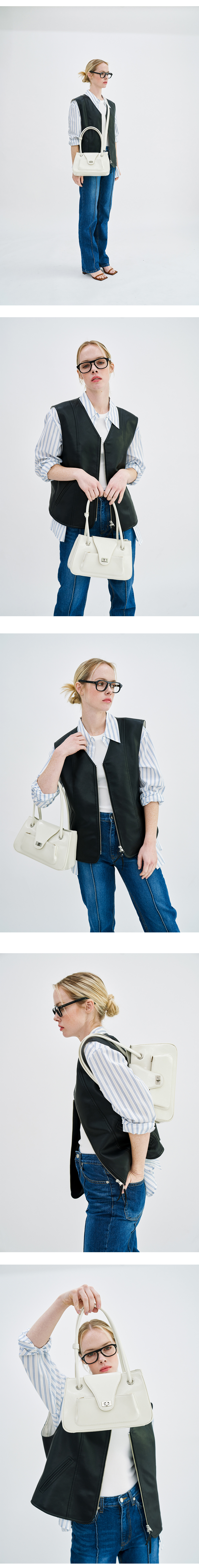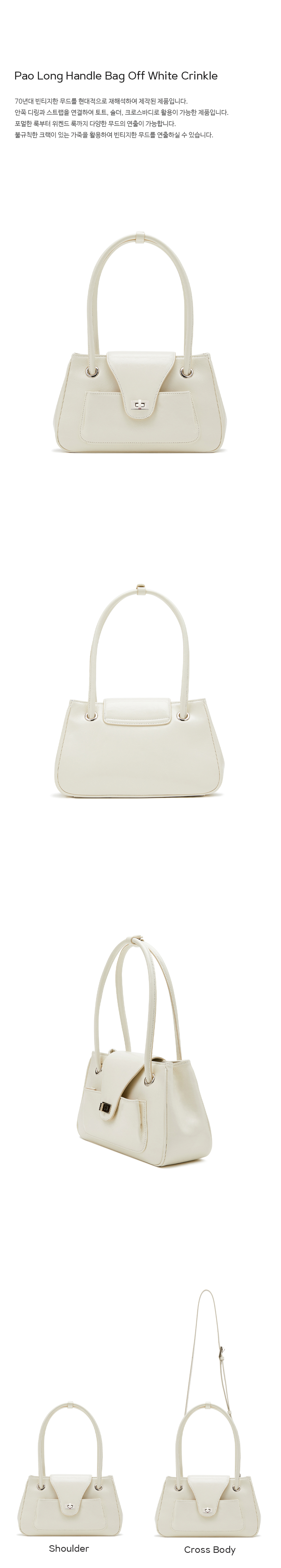 70년대 빈티지한 무드를 현대적으로 재해석하여 제작된 제품입니다. 안쪽 디링과 스트랩을 연결하여 토트, 숄더, 크로스바디로 활용이 가능한 제품입니다. 포멀한 룩부터 위켄드 룩까지 다양한 무드의 연출이 가능합니다.