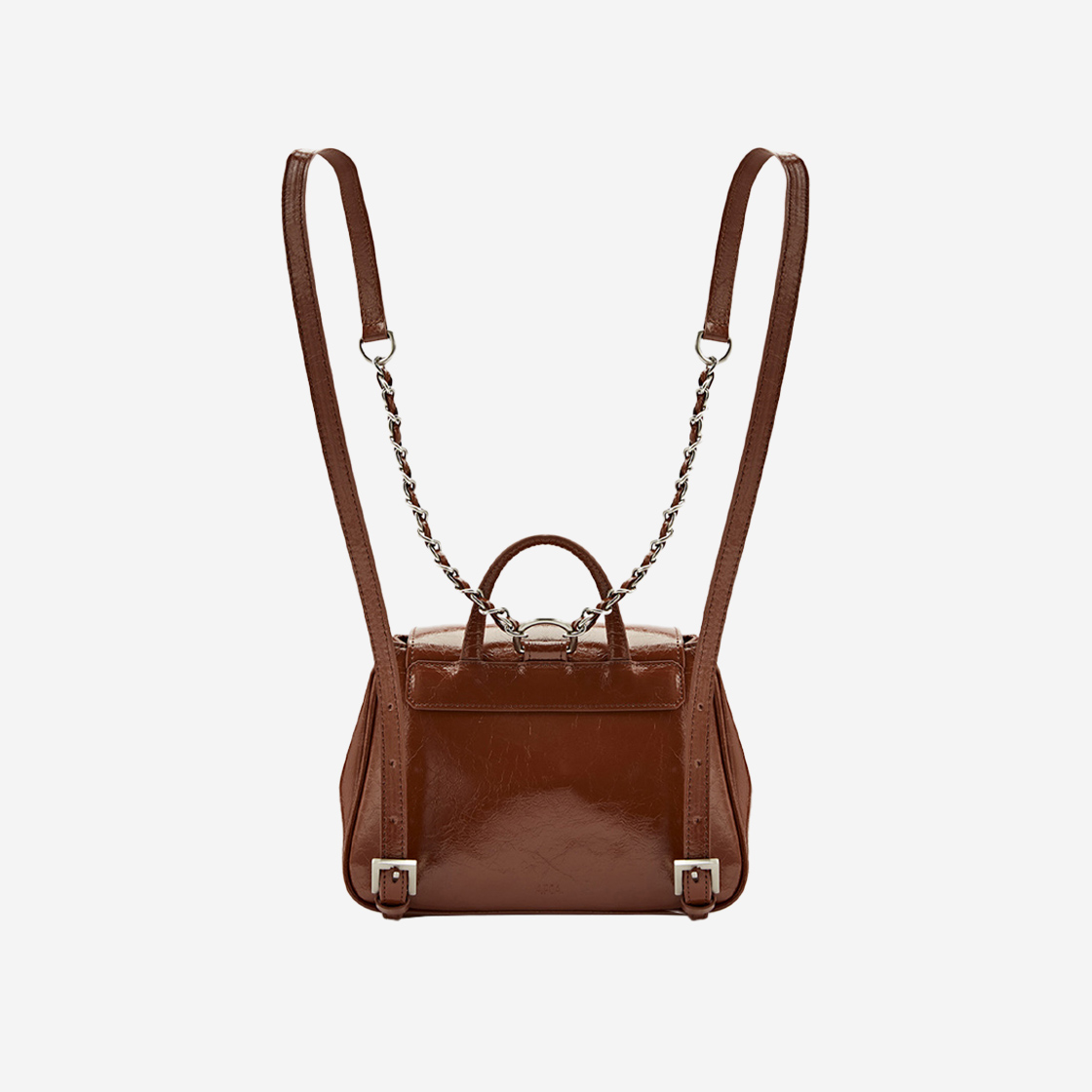 Pao chain backpack APOA 시그니처 디자인인 Pao 라인을 기반하여 구조적인 변형을 준 디자인의 Pao 시리즈 backpack입니다. 크랙 텍스처의 카우 레더를 사용하여, 탑 핸들 디테일을 추가한 형태로 토트, 숄더, 백팩 3way로 다양한 활용이 가능합니다. 뒷면 스트랩에 체인과 가죽끈을 연결하여 편안한 사용감으로 제작된 제품입니다.