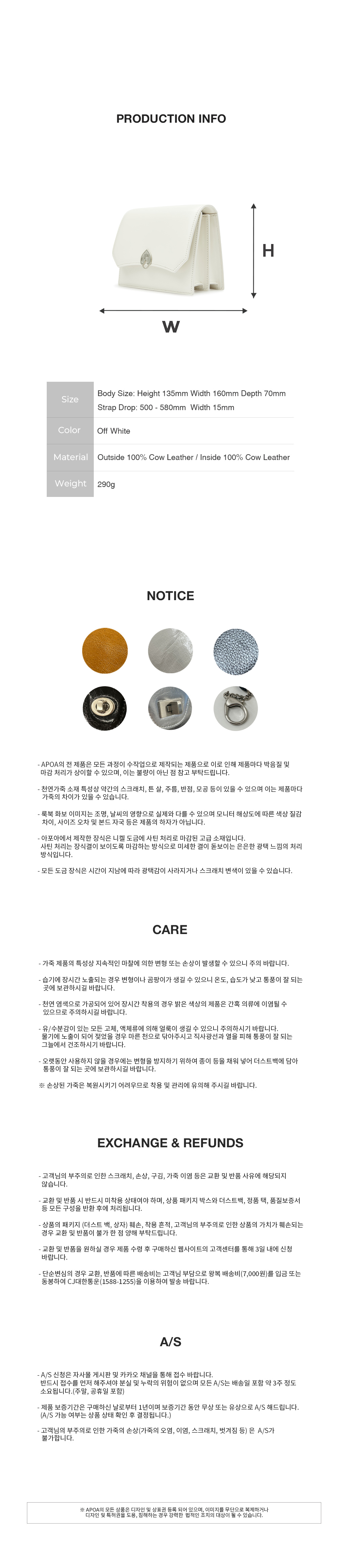 아포아의 뉴 심볼 로고 라인 Comba Bag입니다. 부드러운 터치감과 실키한 광이 특징인 이태리 소가죽으로 제작되었습니다. 클래식한 디자인으로 곡선의 유려함과 직선의 모던한 무드를 더해 조화로운 형태의 bag입니다. 외부에는 뒷면의 지퍼 포켓을 통해 가벼운 수납이 가능하며 내부는 두 개의 수납공간으로 분리되어 용이성을 더했습니다. 기본으로 제공되는 레더 스트랩과 옵션으로 제공되는 체인 스트랩을 통해 다양한 무드를 연출하실 수 있습니다.