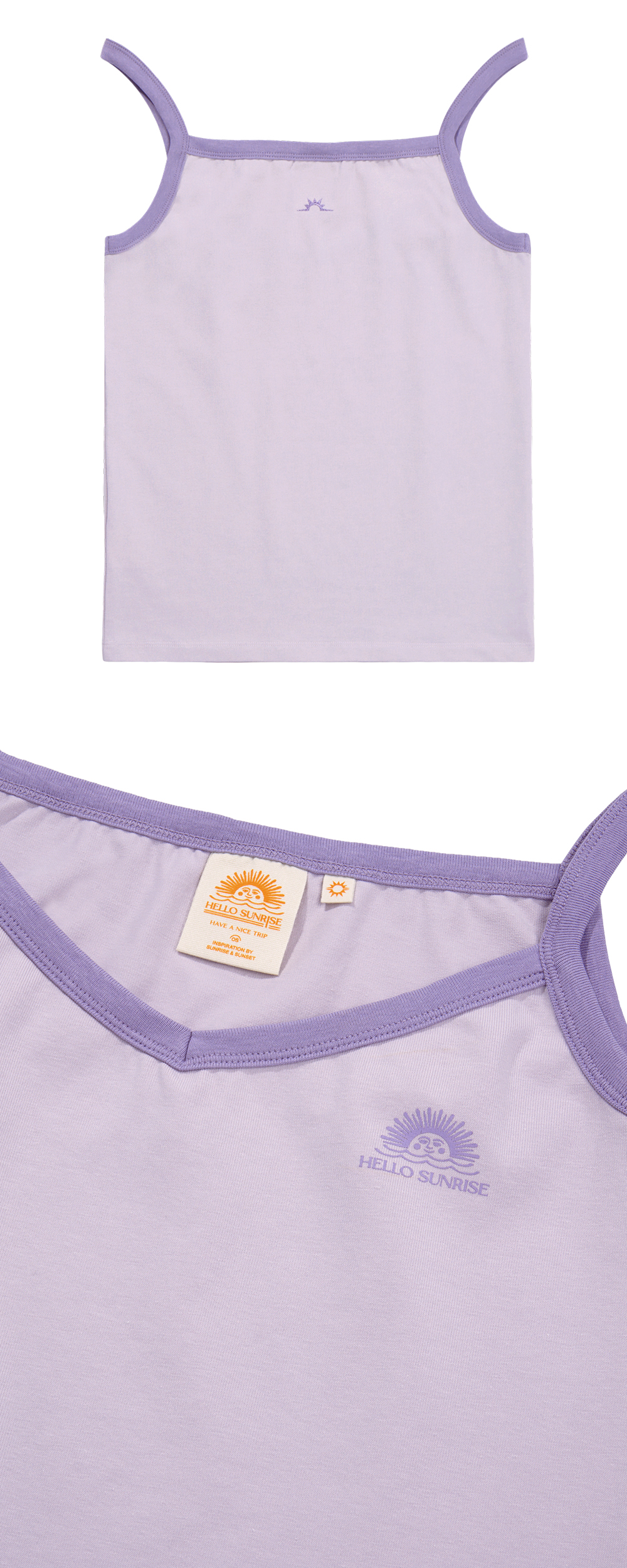 Hello Sunrise 피티드 핏의 여성용 슬리브리스입니다.<br><br> - 전면 헬로 선라이즈 로고 그래픽 <br> - 후면 헬로 선라이즈 심볼 자수<br> - 부드러운 원단의 터치감과 좋은 신축성<br><br> * Shell : Cotton 95%, span5%<br><br> * Made in Korea<br>