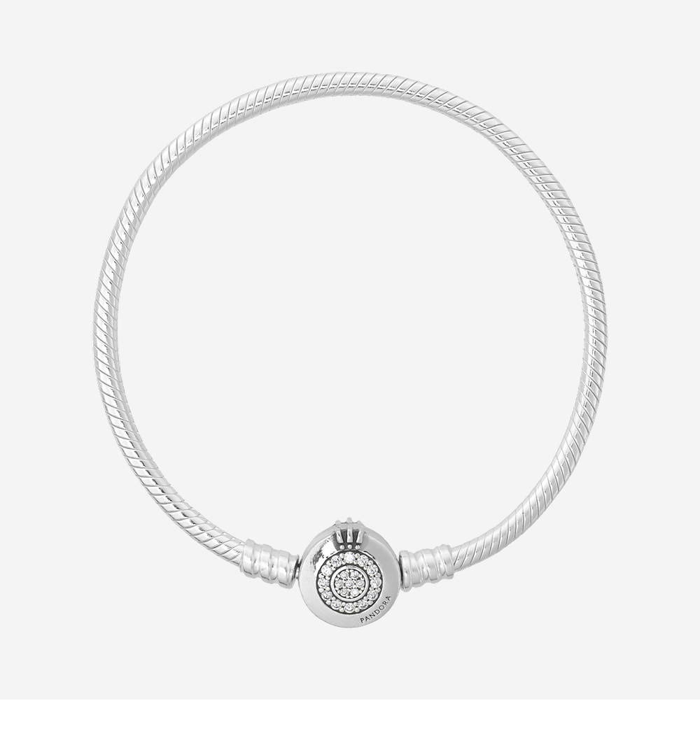 (W) 판도라 모멘트 스파클링 크라운 O 스네이크 체인 브레이슬릿 스털링 실버 클리어