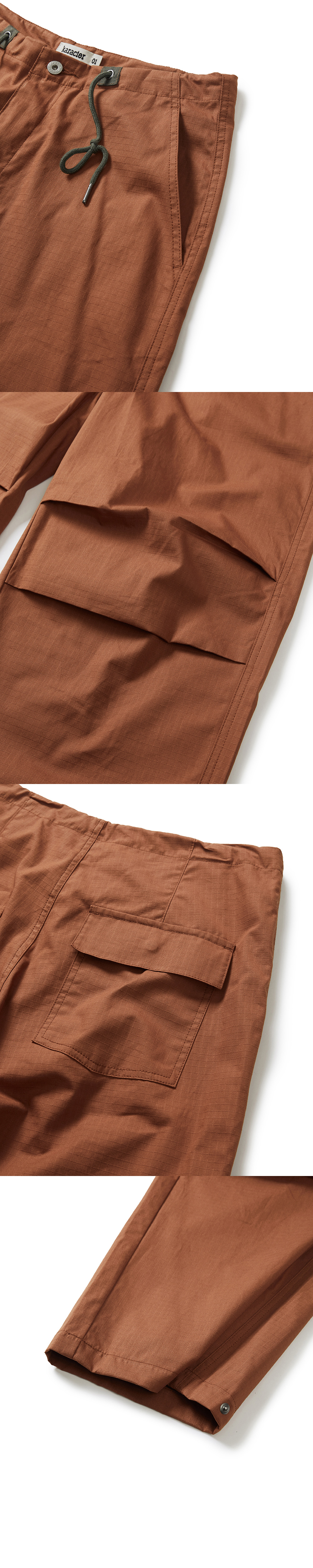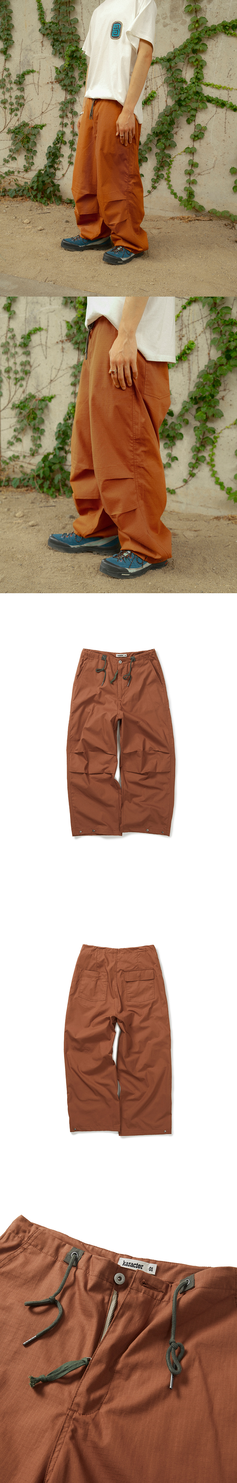 Product Info. - 얇은 두께감의 코튼 소재로 제작된 파라슈트 팬츠 - 매트한 텍스처의 고밀도 립 스탑 소재로 높은 내구성 - 편안하게 착용 가능한 릴렉스드 핏 - 디자인 포인트와 허리 사이즈 조절 기능의 배색 스트링 - 배색 지퍼 플라이 컬러 포인트 - 밑단 버튼 어드저스터로 롤 업 등 다양한 연출에 용이한 아이템 - 후면부 감각적인 불균형 포켓 디자인