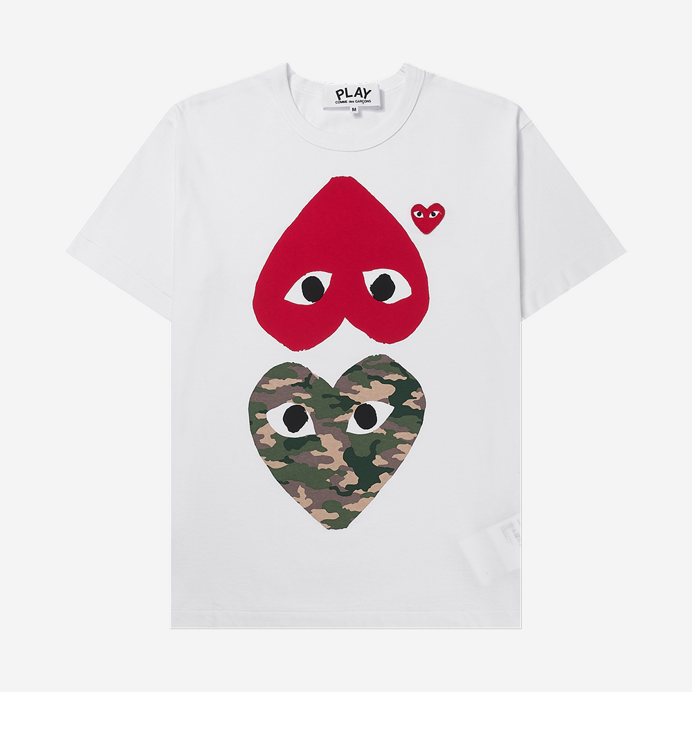 (W) Play Comme des Garcons Camouflage With Upside Down Heart T-Shirt White