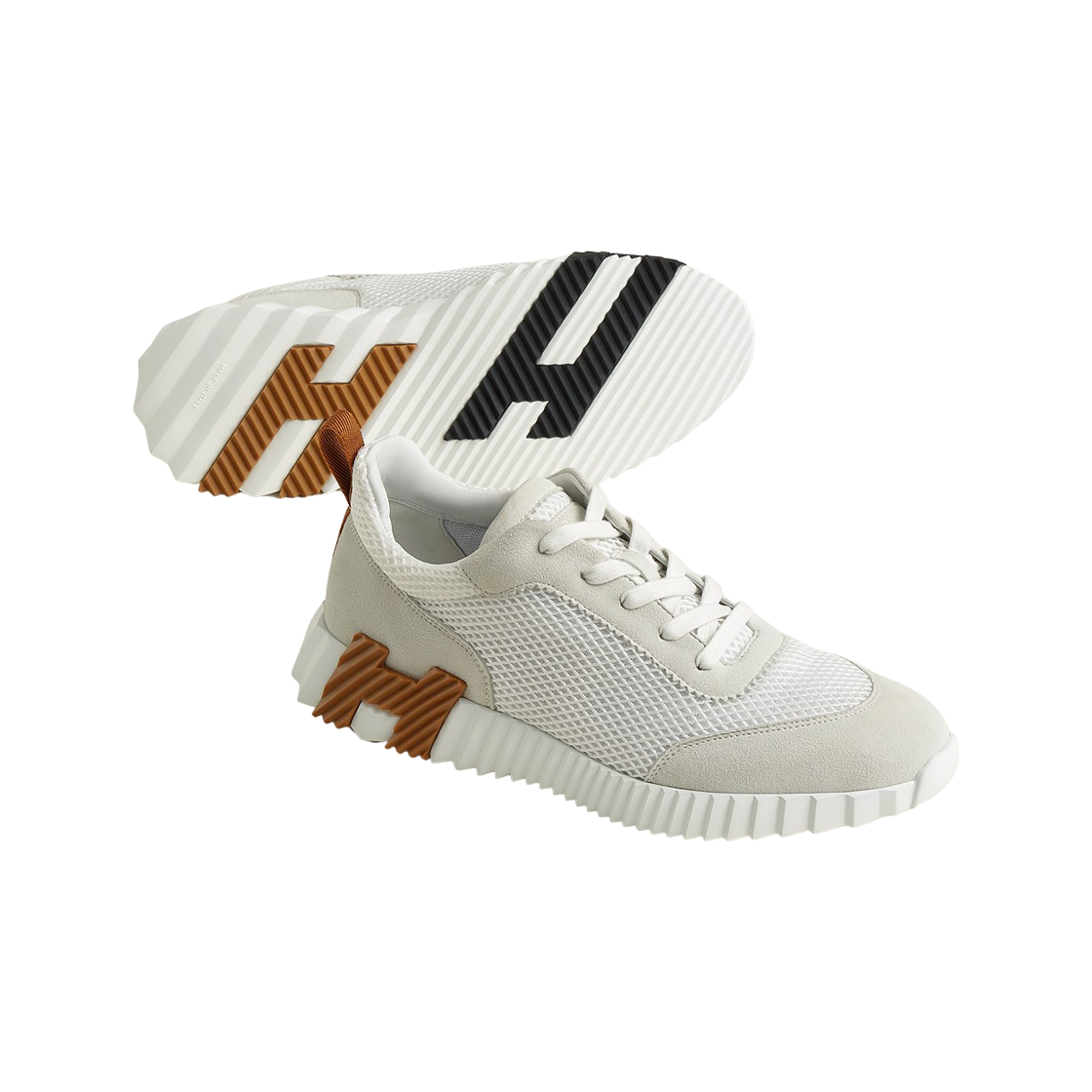 Hermes Bouncing Sneakers Graphic Mesh Suede Goatskin & Blanc