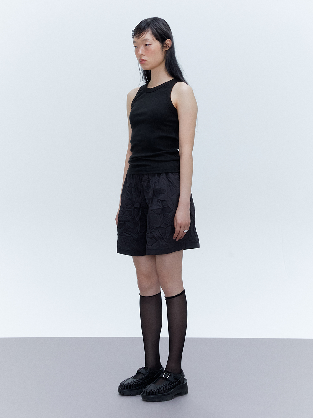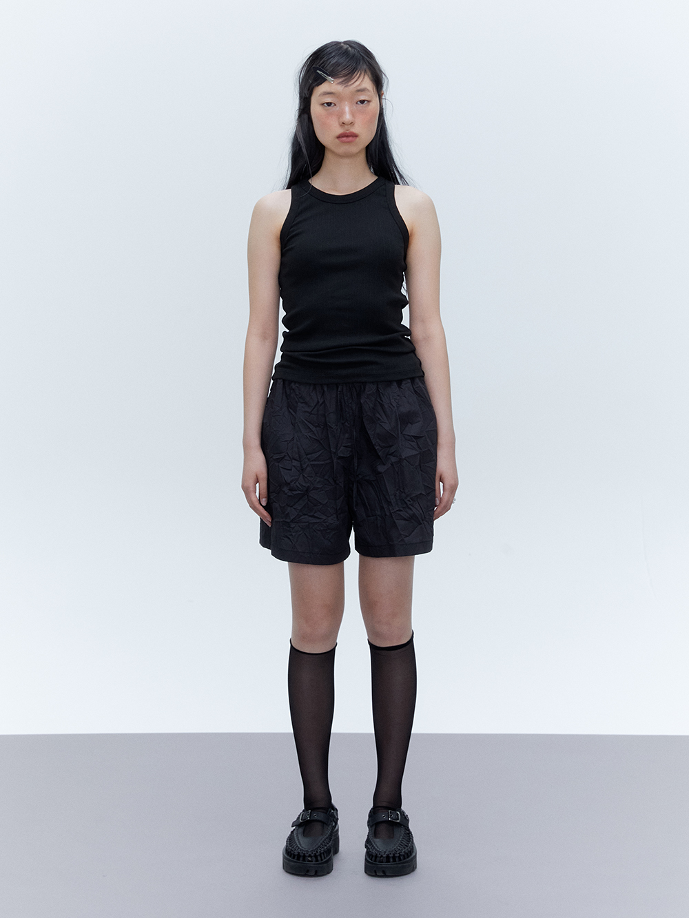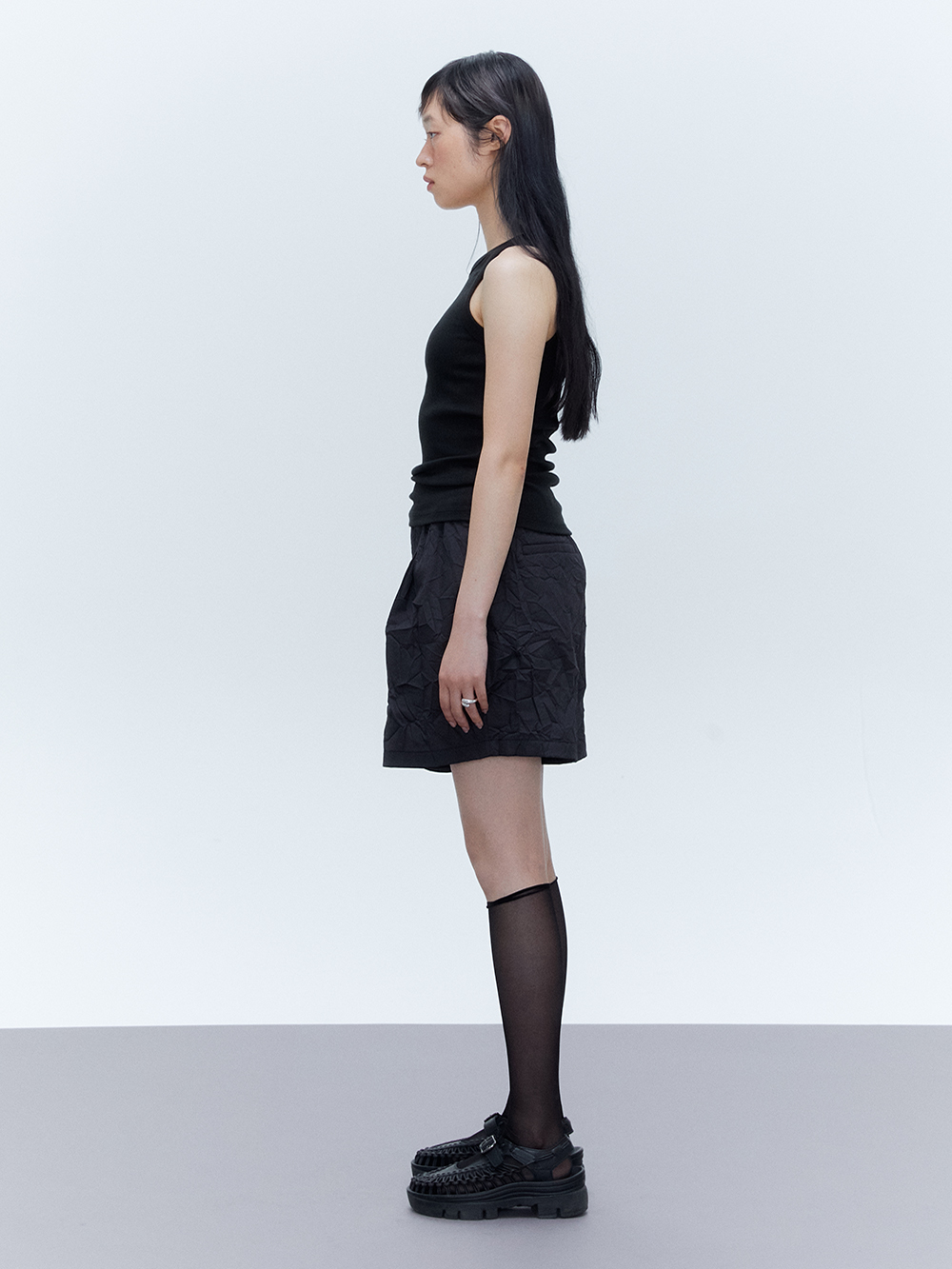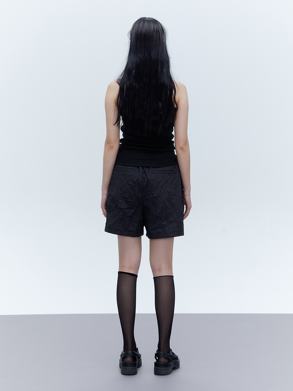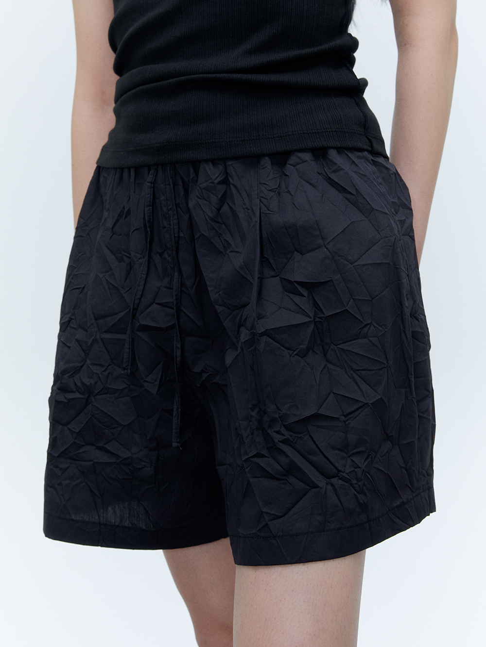 2024 SUMMER COLLECTION - POLY, COTTON 혼방의 밴딩 쇼츠 - 원단의 주름 가공을 통한 독특한 소재감 - 전면 원턱 디테일의 여유있는 품 - 허리의 밴딩을 통한 편안한 착용감 - 얇은 안감을 통한 비침 방지 - Made in korea +COLOR BEIGE, CHARCOAL +CARE Dry cleaning , 단독 찬물세탁 권장 +MODEL SIZE 167cm Model(Female) wears size Free