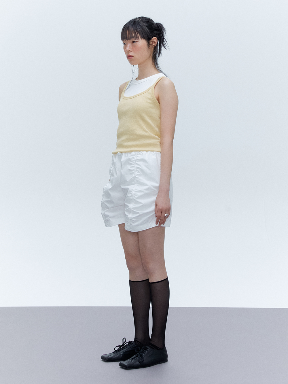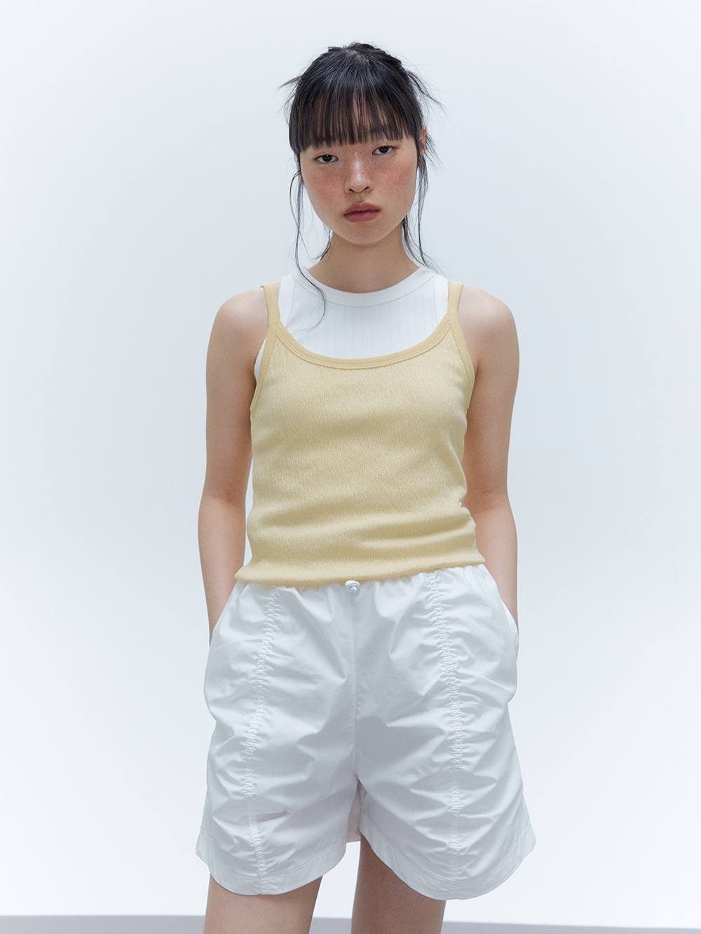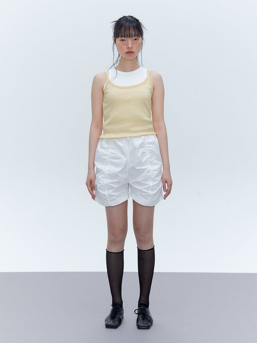 2024 SUMMER COLLECTION - COTTON, NYLON 혼방의 밴딩 쇼츠 - 바이오 워싱 가공을 통한 부드러운 터치감 - 전면 중심부의 셔링디테일 - 허리의 밴딩을 통한 편안한 착용감 - YKK사의 스토퍼 - Made in korea +COLOR WHITE, BEIGE, BLACK +CARE Dry cleaning only +MODEL SIZE 167cm Model(Female) wears size Free