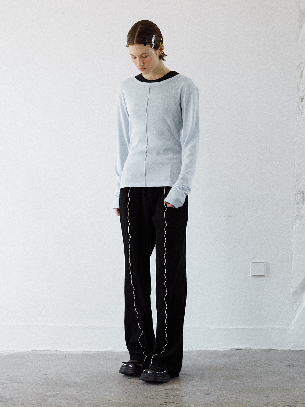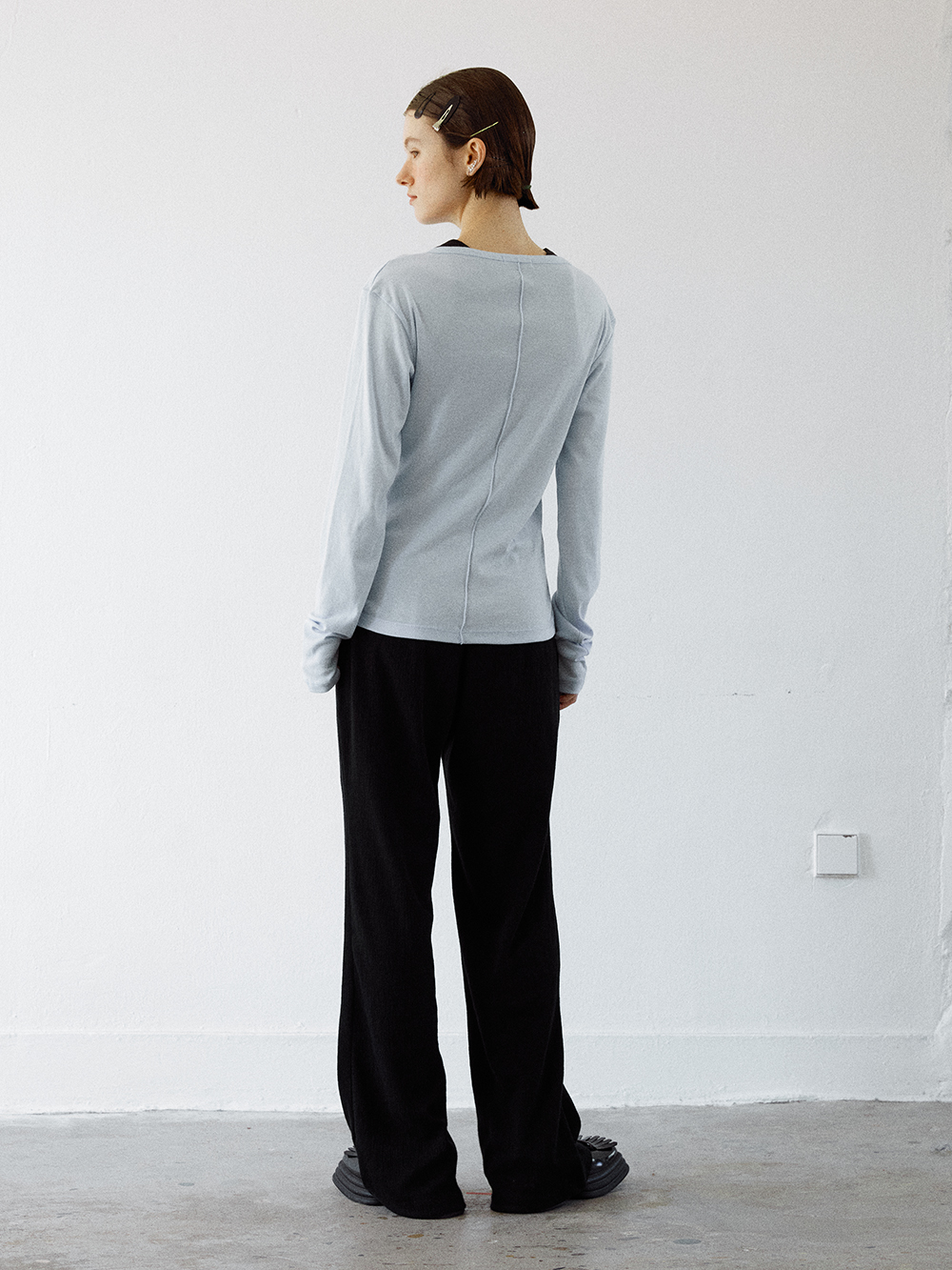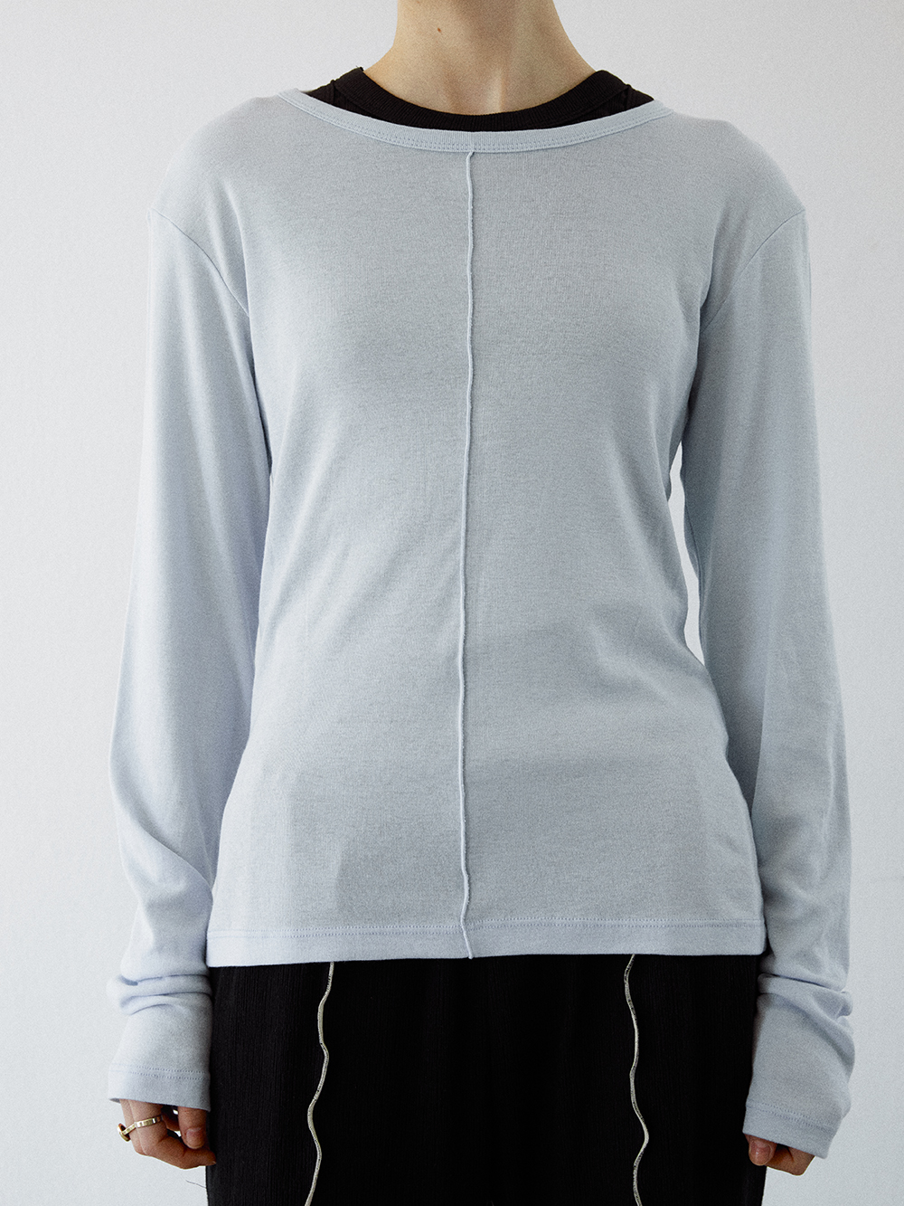 2024 SPRING COLLECTION - COTTON, MODAL 혼방의 롱 슬리브 티셔츠 - 전,후면의 스티치 트리밍 디테일 - MODAL 특유의 부드러운 터치감 - Made in korea +COLOR BLUE, OFF WHITE, NAVY +CARE Dry cleaning , 단독 찬물세탁 권장 +MODEL SIZE 172cm / 49kg Model(Female) wears size Free