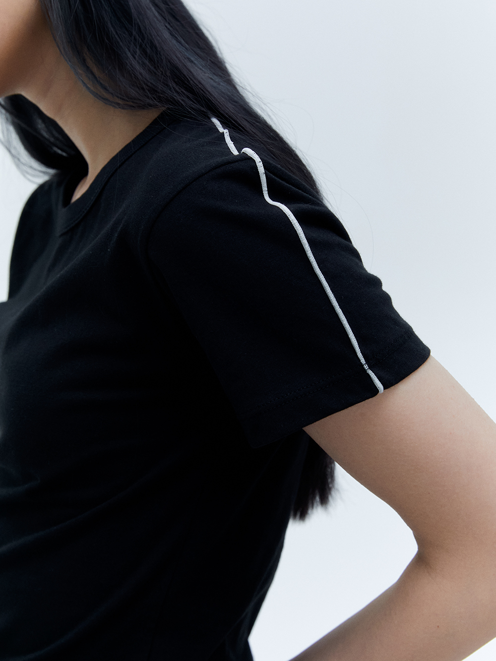 2024 SUMMER COLLECTION - 바이오 워싱가공이 되어진 30수 티셔츠 - 어깨에서 소매로 이어지는 배색 스티치 트리밍 디테일 - 바이오 워싱 가공을 통한 수축 및 변형 방지 - Made in korea +COLOR BLACK, OFF WHITE +CARE Dry cleaning , 단독 찬물세탁 권장 +MODEL SIZE 167cm Model(Female) wears size Free