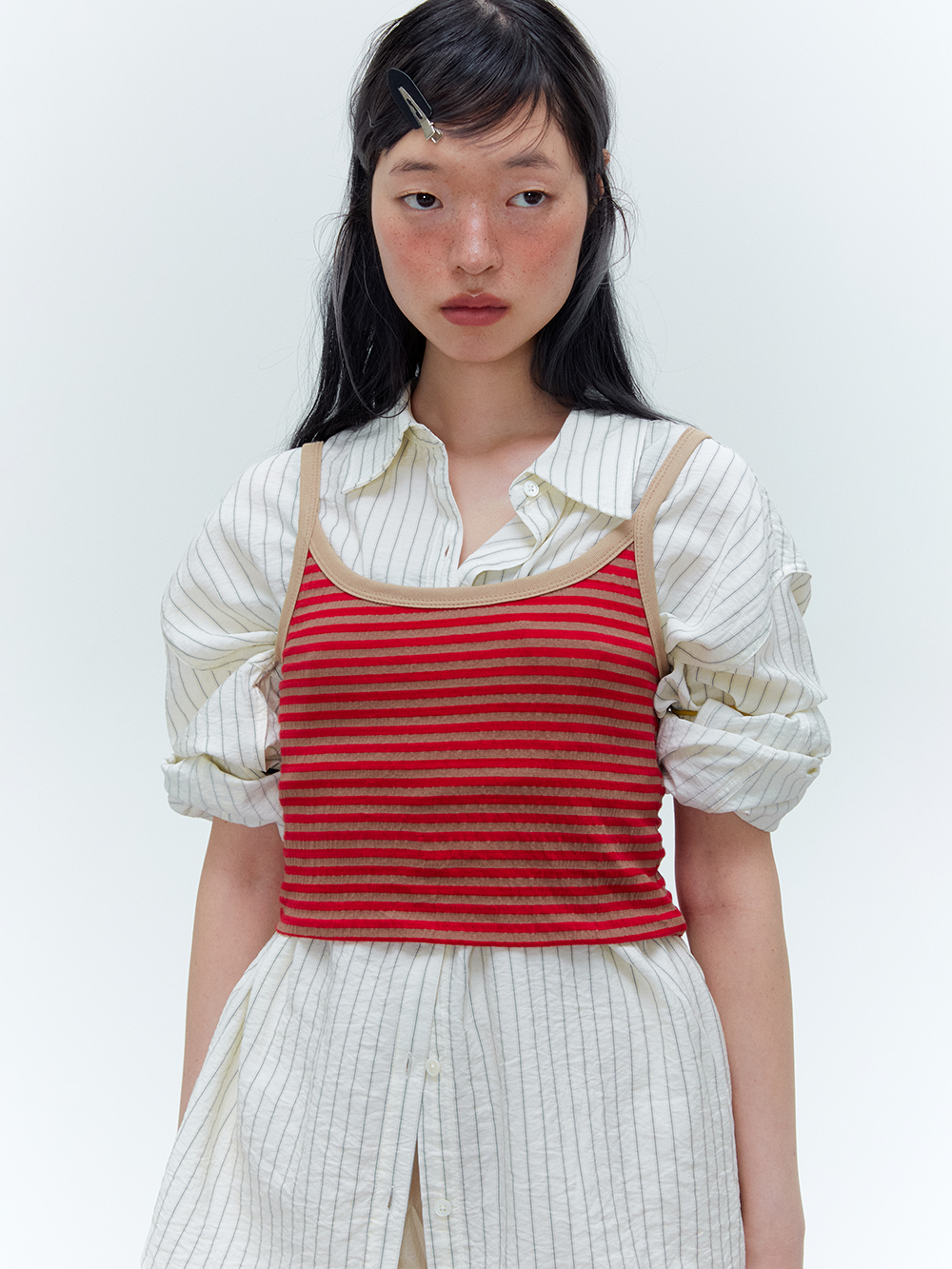 2024 SUMMER COLLECTION - COTTON, NYLON, SPAN 혼방의 슬리브리스 탑 - 주름가공되어진 독특한 소재감 - 주름가공,스판소재의 원단으로 편안한 착용감 - Made in korea +COLOR RED/BEIGE, BLUE/GREEN, GRAY, BUTTER +CARE Dry cleaning , 단독 찬물세탁 권장 +MODEL SIZE 167cm Model(Female) wears size Free