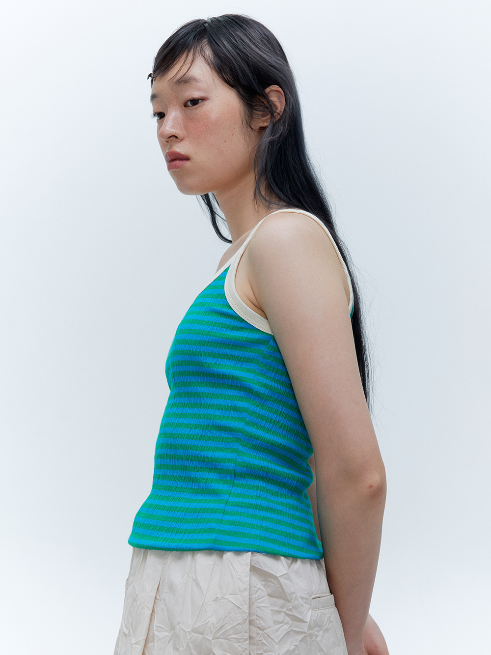 2024 SUMMER COLLECTION - COTTON, NYLON, SPAN 혼방의 슬리브리스 탑 - 주름가공되어진 독특한 소재감 - 주름가공,스판소재의 원단으로 편안한 착용감 - Made in korea +COLOR RED/BEIGE, BLUE/GREEN, GRAY, BUTTER +CARE Dry cleaning , 단독 찬물세탁 권장 +MODEL SIZE 167cm Model(Female) wears size Free