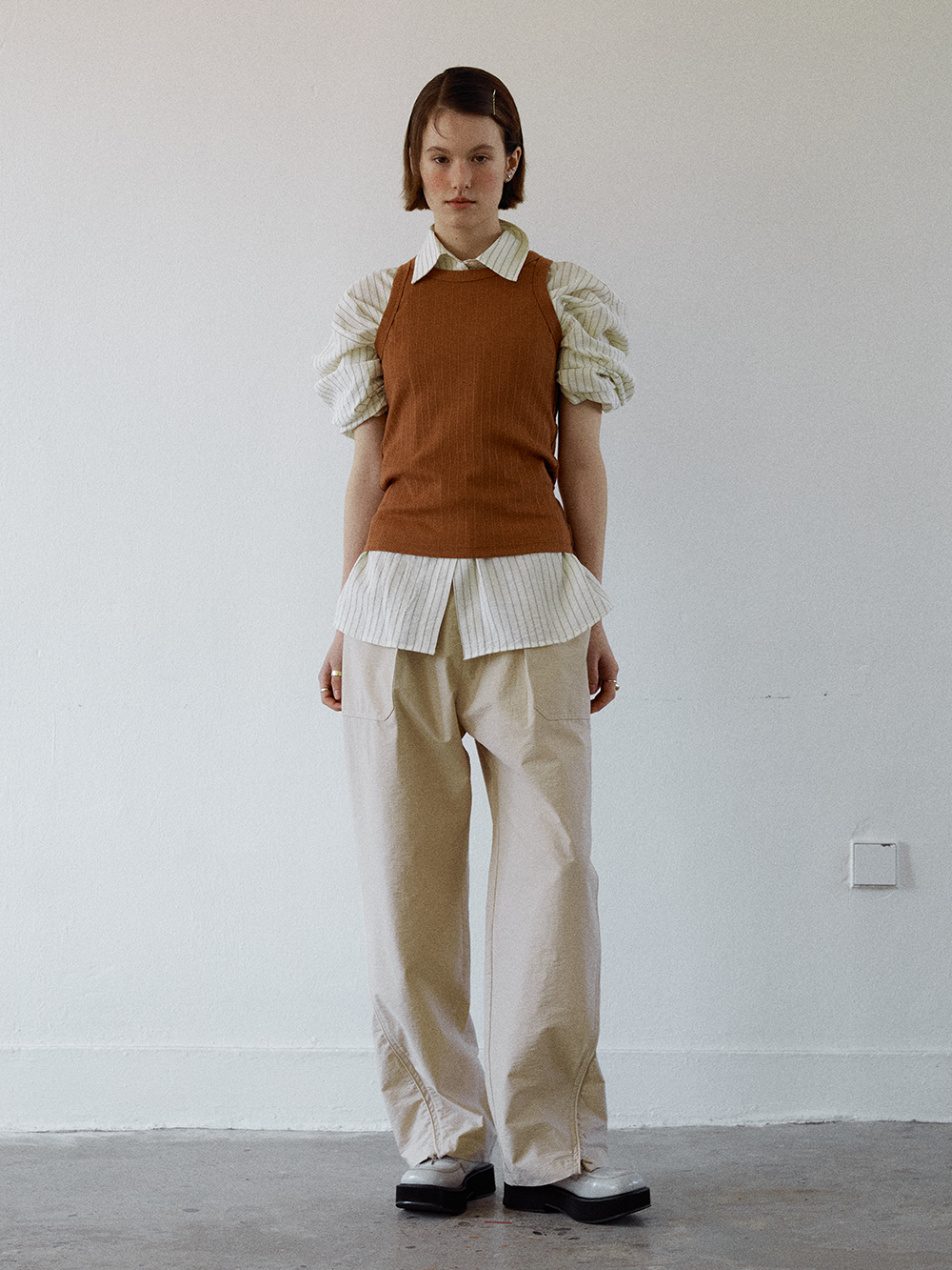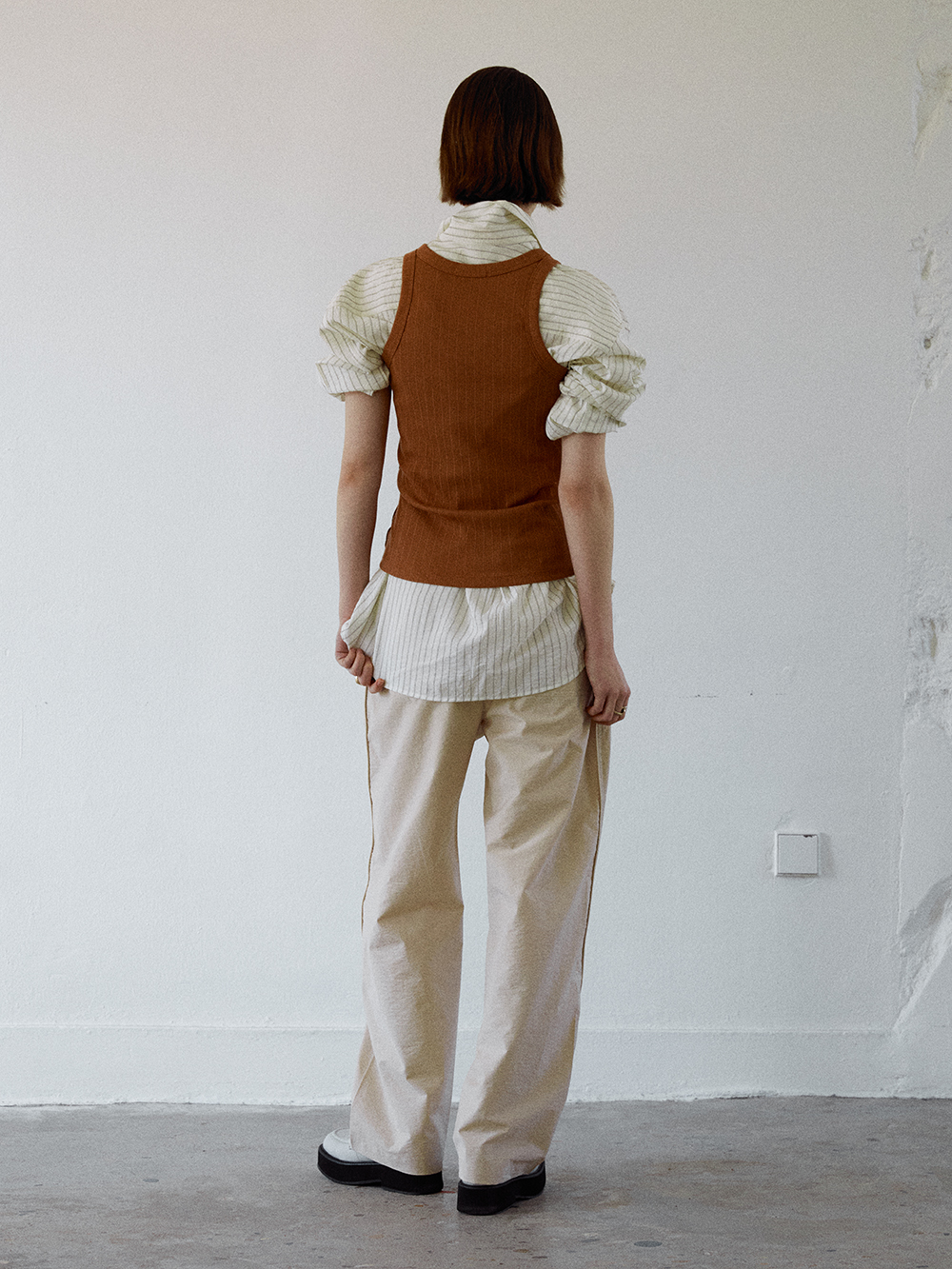 2024 SPRING COLLECTION - COTTON, MODAL 혼방의 슬리브리스 - 옆면의 스티치 트리밍 디테일 - 독특한 골지느낌의 소재감 - MODAL 특유의 부드러운 터치감 - Made in korea +COLOR OFF WHITE, NUTSHELL, BLACK +CARE Dry cleaning , 단독 찬물세탁 권장 +MODEL SIZE 172cm / 49kg Model(Female) wears size Free