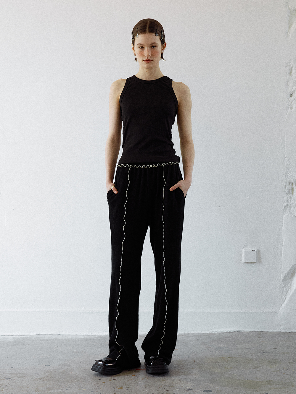 2024 SPRING COLLECTION - COTTON, MODAL 혼방의 슬리브리스 - 옆면의 스티치 트리밍 디테일 - 독특한 골지느낌의 소재감 - MODAL 특유의 부드러운 터치감 - Made in korea +COLOR OFF WHITE, NUTSHELL, BLACK +CARE Dry cleaning , 단독 찬물세탁 권장 +MODEL SIZE 172cm / 49kg Model(Female) wears size Free