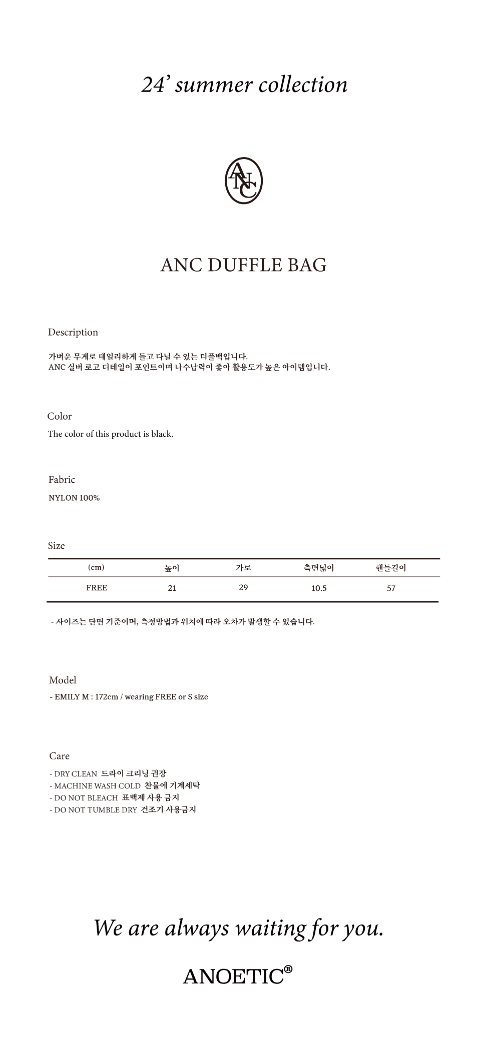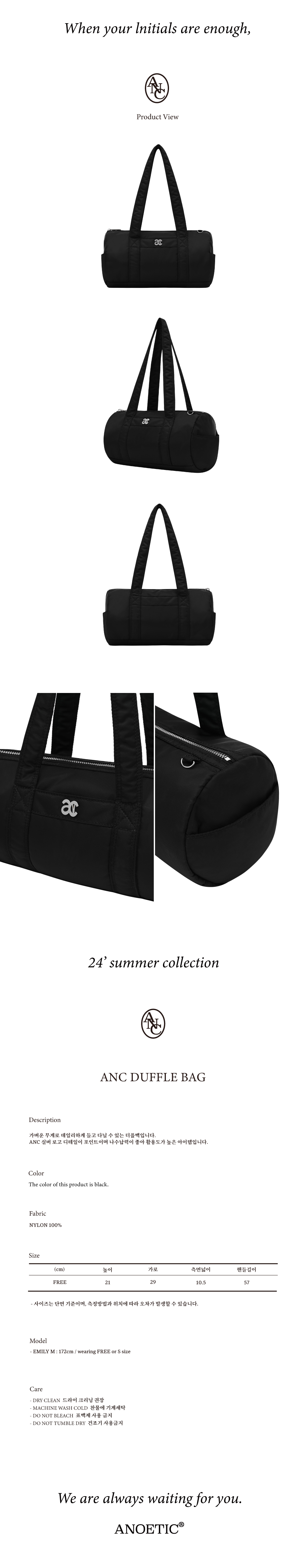 아노에틱 Anc 더플 백 블랙