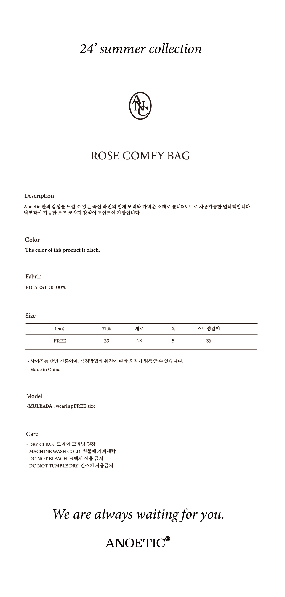아노에틱 로즈 컴피 백 블랙