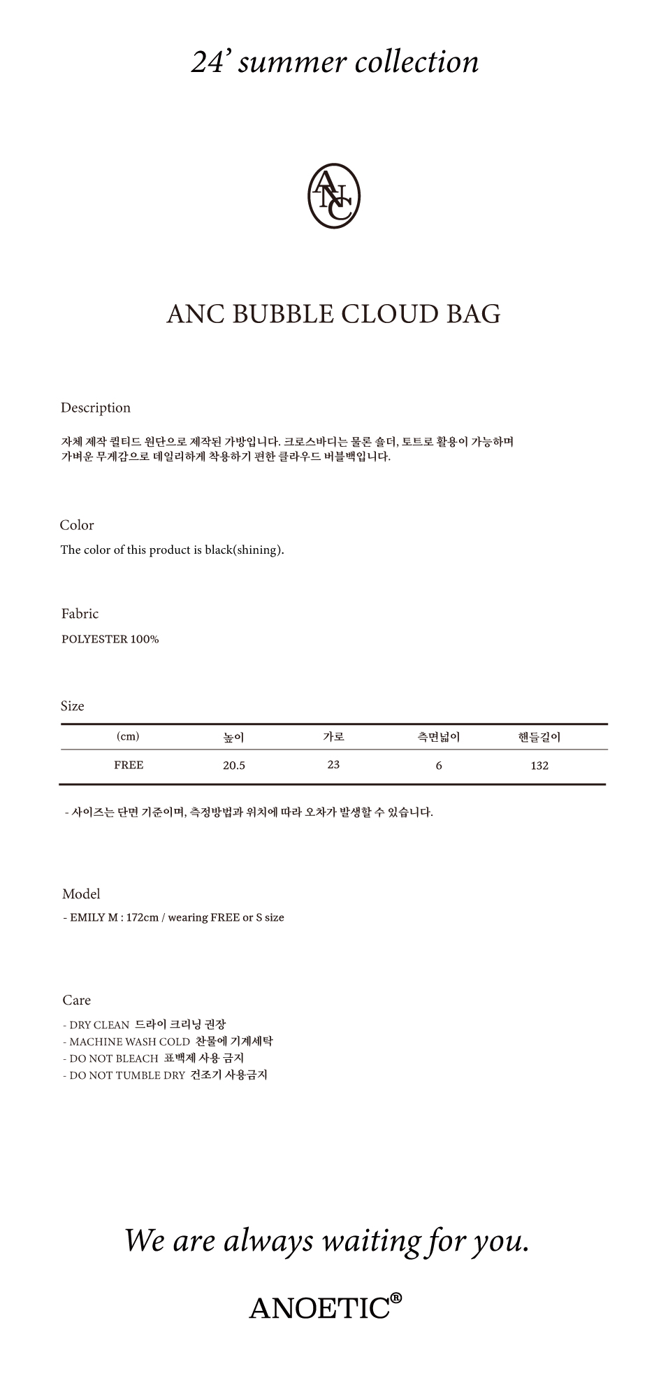아노에틱 Anc 버블 클라우드 백 블랙