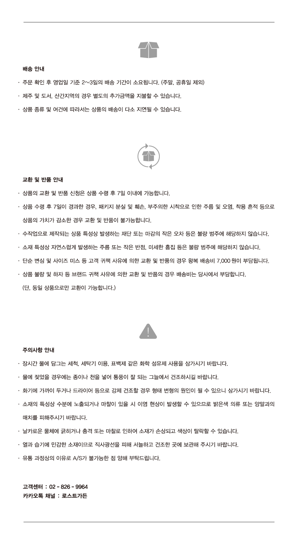 교환 및 반품 안내