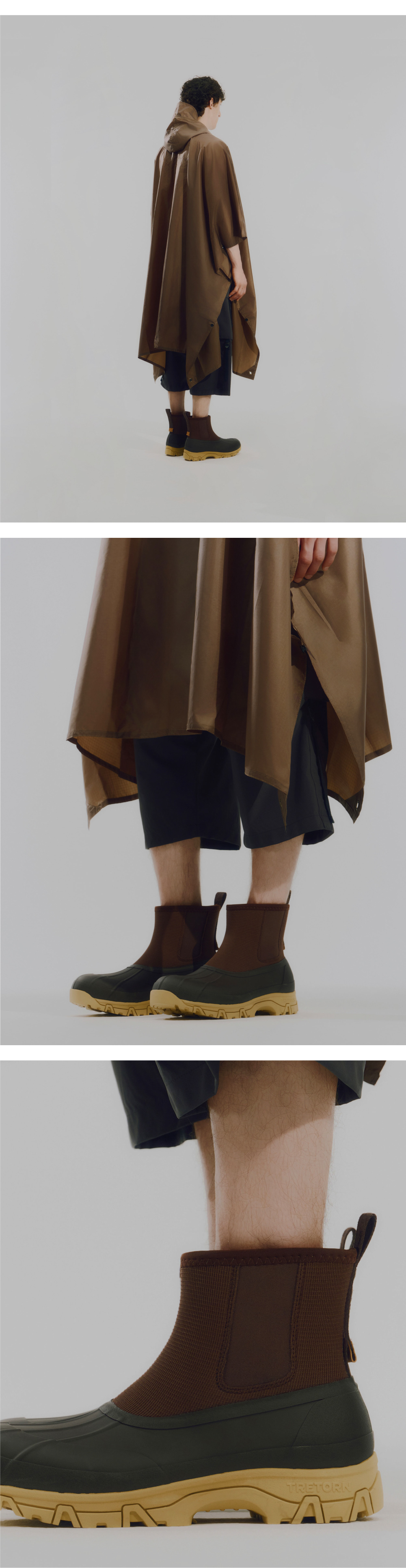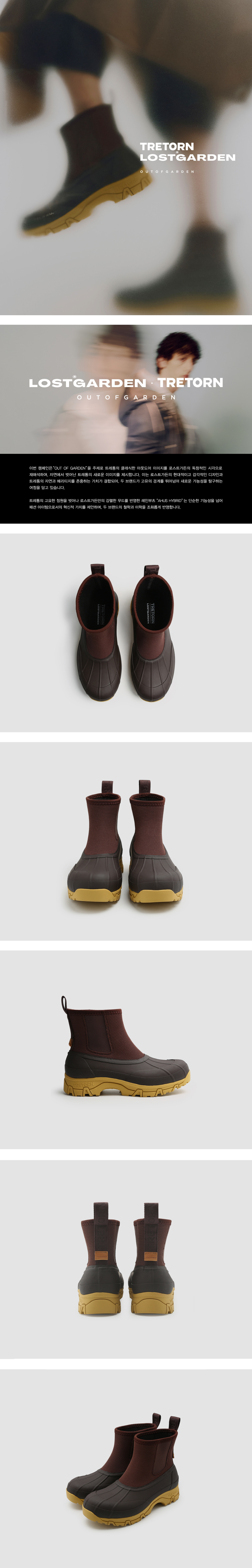• 로스트가든 × 트레통 협업 • 덕 부츠 타입의 아웃도어 부츠를 현대적인 디자인으로 재해석한 레인부츠 • 전통적인 덕 부츠에서 볼 수 있는 토 캡의 러버 쉘 디테일 • FSC 인증 천연고무 사용 • 완벽한 방수와 빠른 건조를 위해 3M 네오프렌과 메시를 합포한 어퍼 • 내구성과 신축성이 뛰어난 3M 네오프렌 라이닝 • 트레통 로고 풀 탭과 로스트가든 로고 가죽 탭 디테일 • 안정성 강화를 위해 금속 레일이 적용된 미드솔 • 탈부착이 가능한 EVA 인솔 • 견고한 내구성과 비틀림에 강한 러버 아웃솔 상품 정보 • Upper: FSC-certified® Rubber & Neoprene & Mesh • Lining: Neoprene • Insole: EVA (1cm) • Outsole: FSC-certified® Rubber Sole (4cm) 사이즈 안내 • 평소 착용하시는 신발 정사이즈로 추천드립니다.