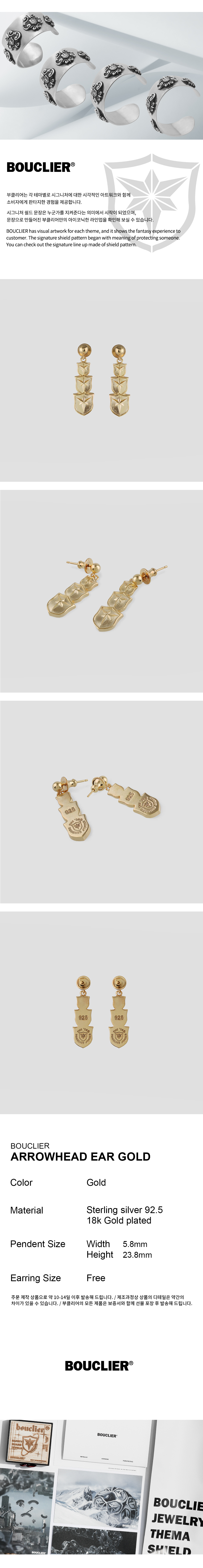 부클리어 에로우헤드 이어링 골드
