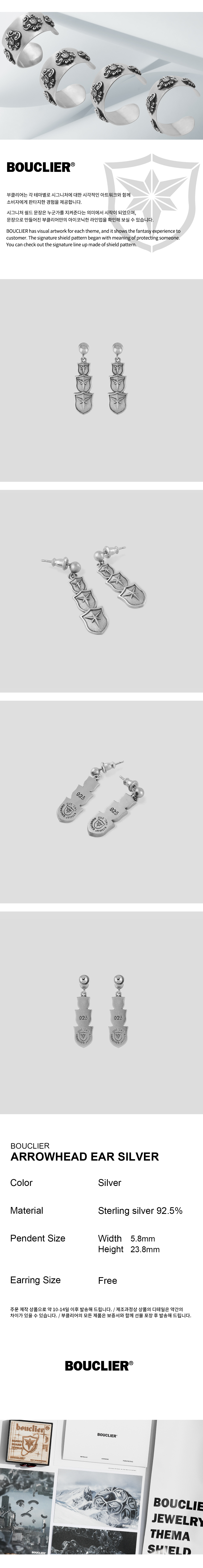 부클리어 에로우헤드 이어링 실버