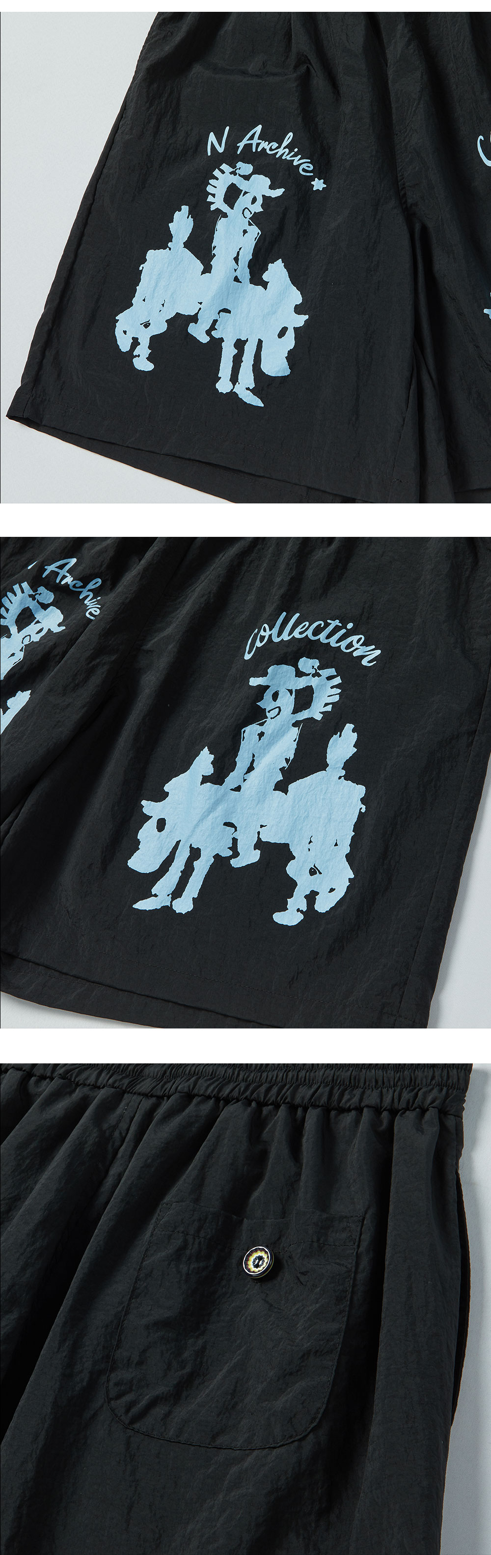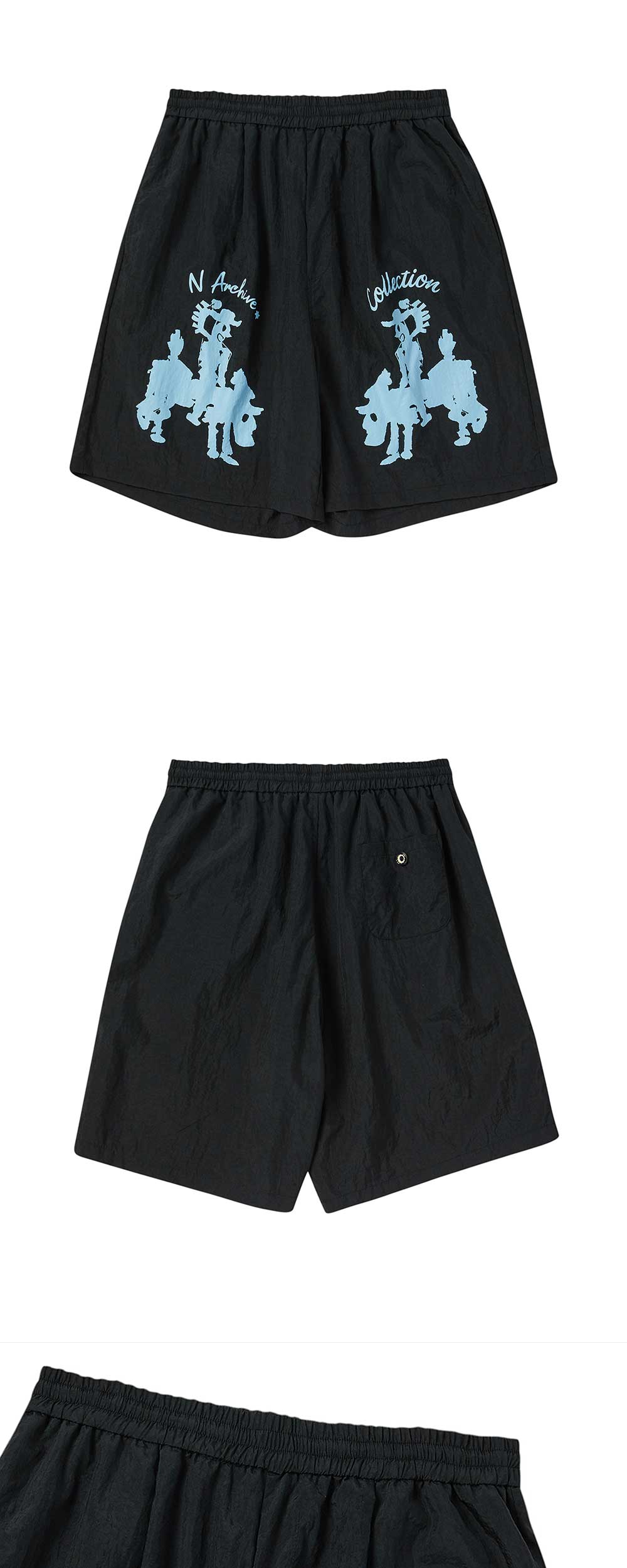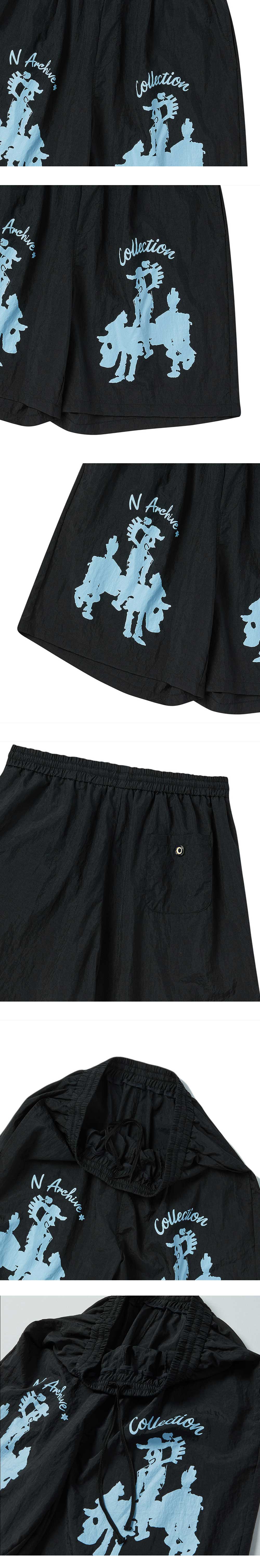 N ARCHIVE Light Weight Hand Drawing Nylon Bumuda Pants Black